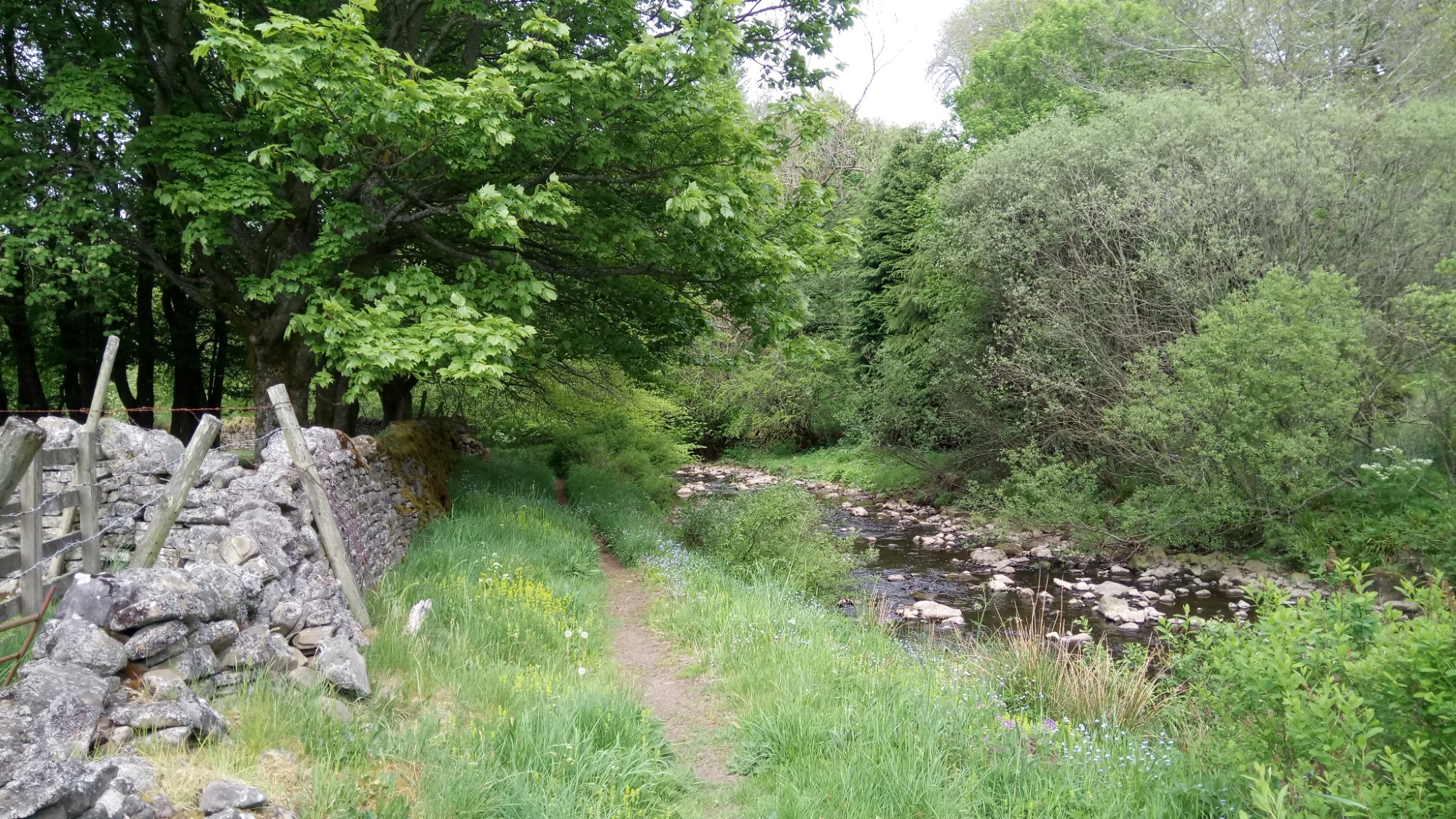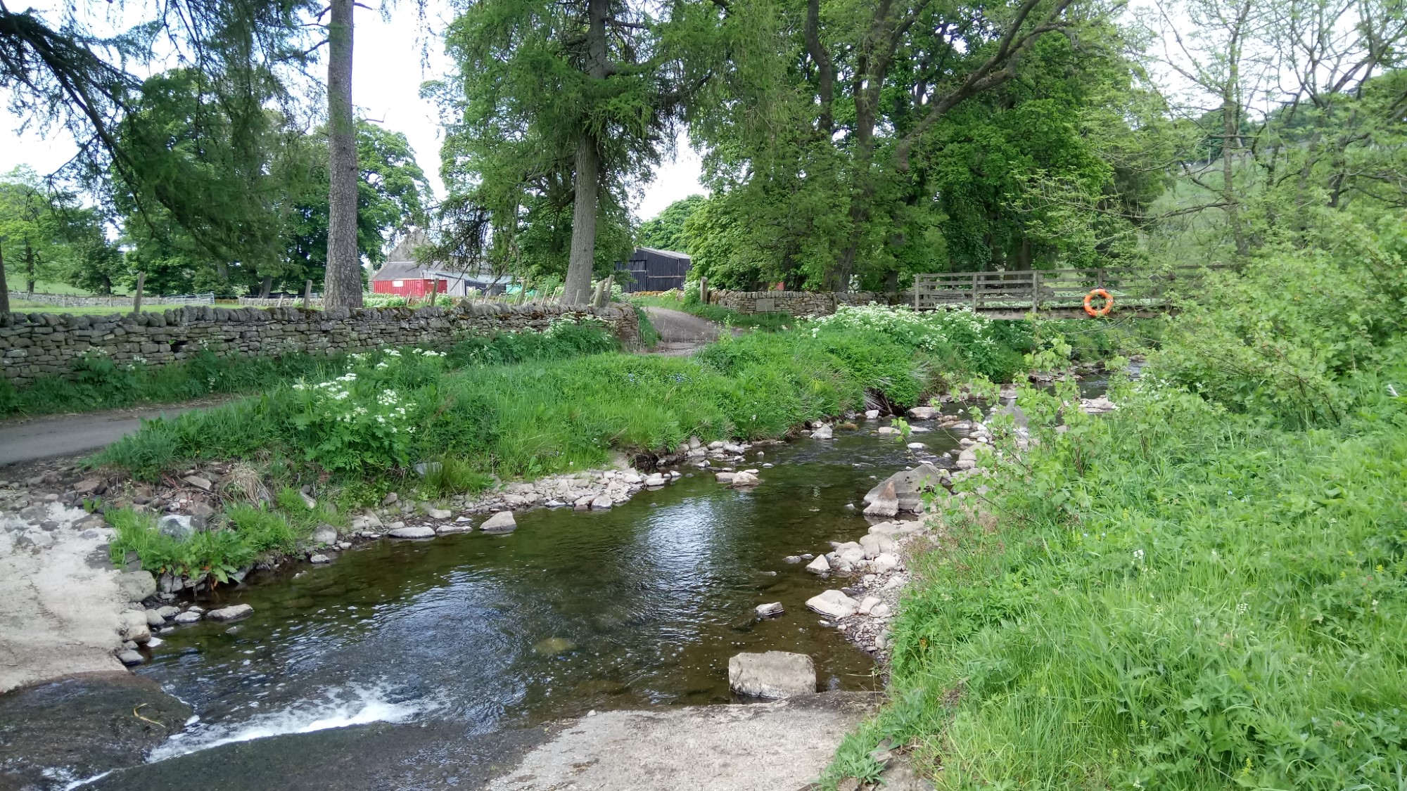 From here we continued along the track until it descended back down towards the river. The river crossing was a ford, although there was a old footbridge a little further along. We chanced the ford as the water wasn’t too deep.