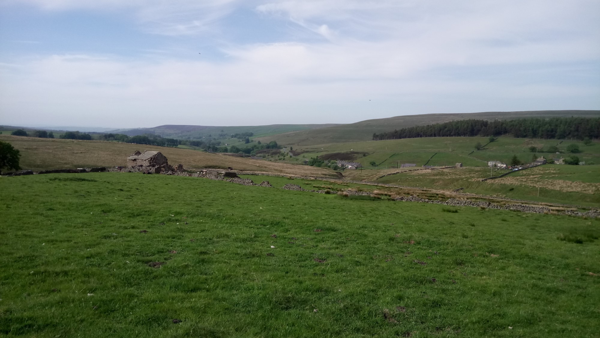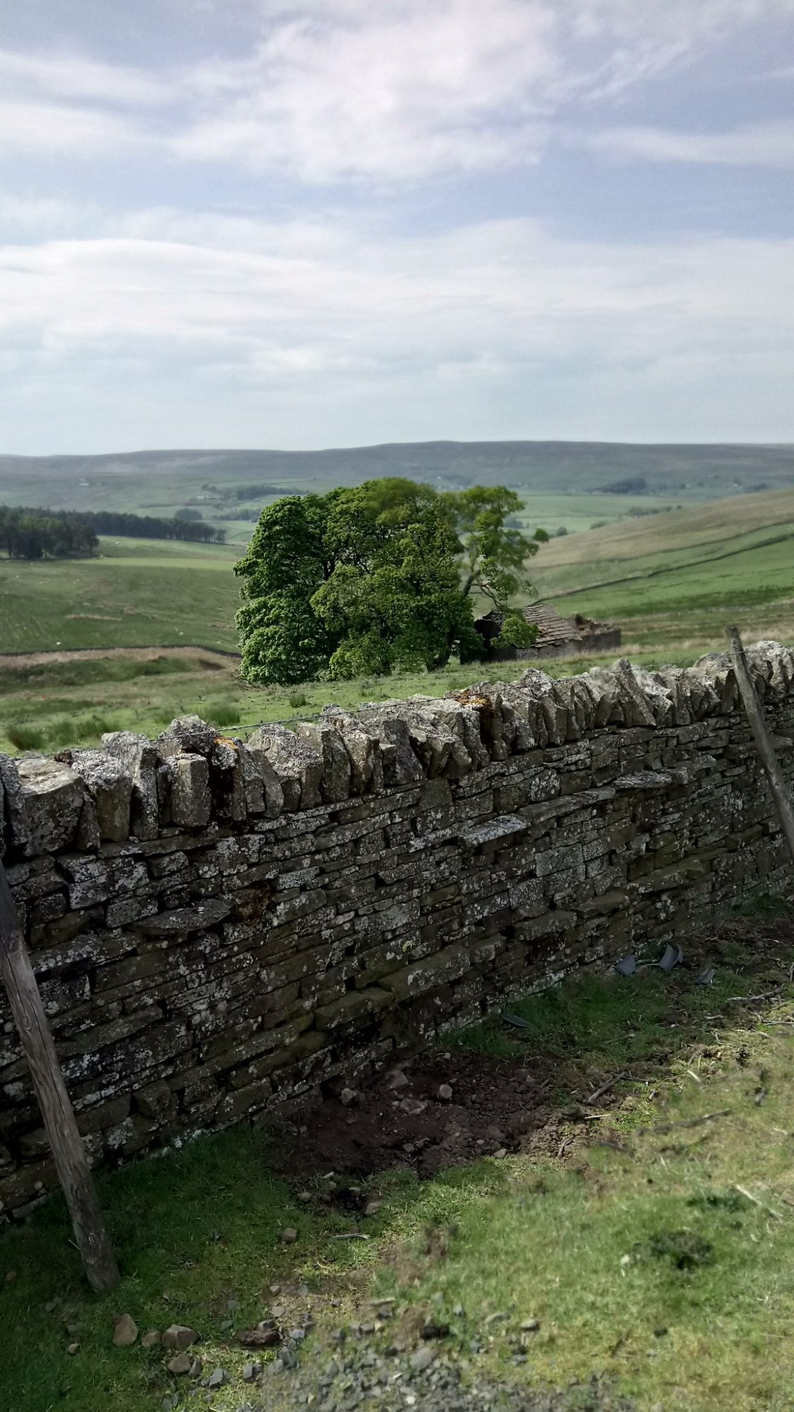Continuing on we followed the path up the road towards the start of the walk over Byerhope Bank. There is a shortcut over a ladder stile. However, this stile, which was a bit rickety to start with, is now unusable. We managed to use it but another rung disappeared when I (Martin) stepped on it. We’ll have to take a diversion next time.