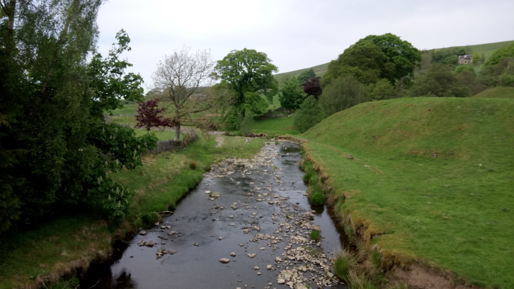 Going away from the river we encountered an enclosure full of sheep and lambs, noisily waiting for the farmer to do something with them. We carefully negotiated them, trying not to disturb them too much. We then started the climb up the other side of the valley, via fields, gates and stiles, and more sheep of course.