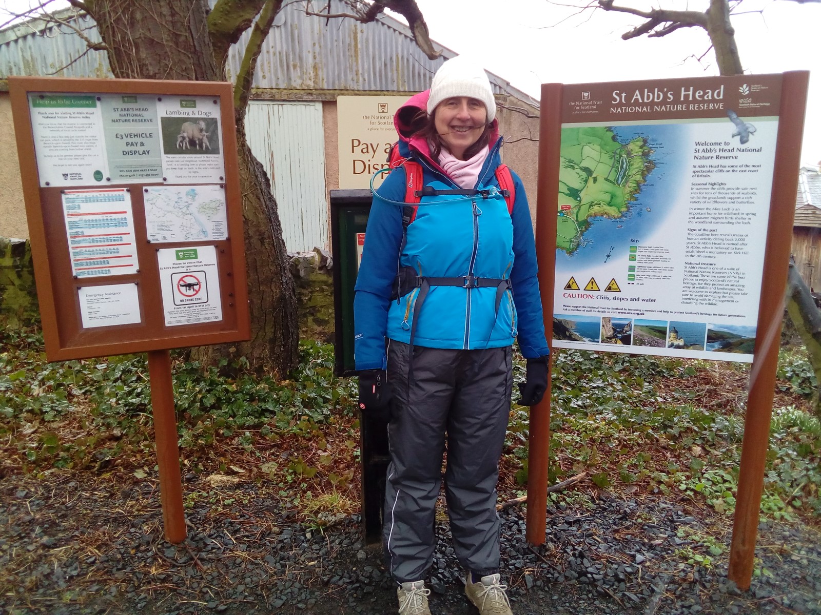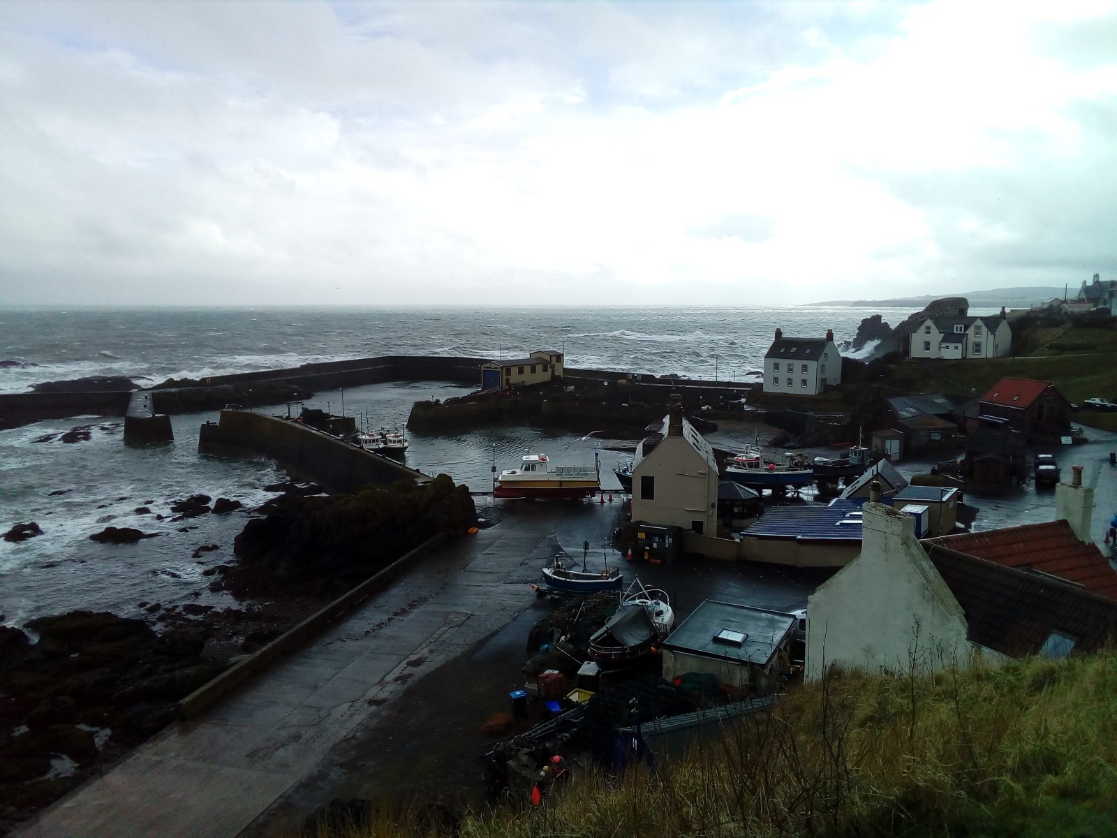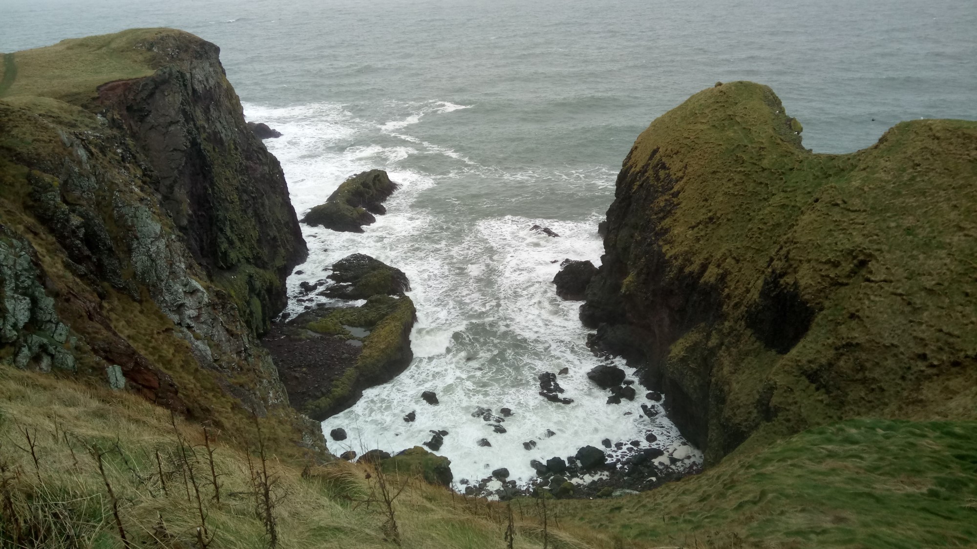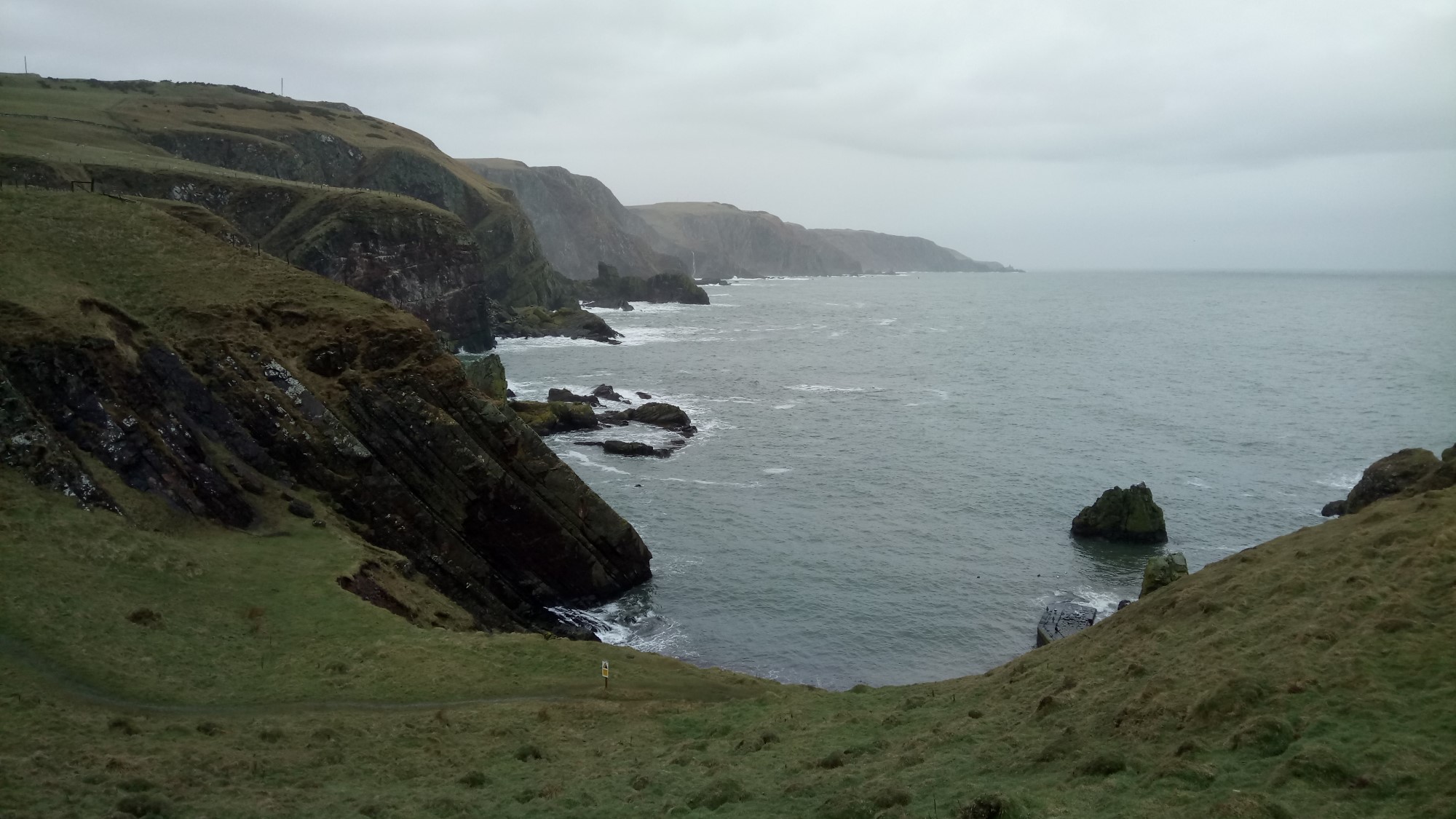 The weather forecast wasn’t good, wet and cold, so we weren’t too keen on setting off on this one.  However, needs must and off we went.  The pleasant little walk down to the harbour led us to our first view over St Abbs.  If this was a view of things to come we were in for a treat.  We took a moment to look over the quaint little harbour, from the viewing point outside the visitors centre, before walking down some stairs to the harbour itself.