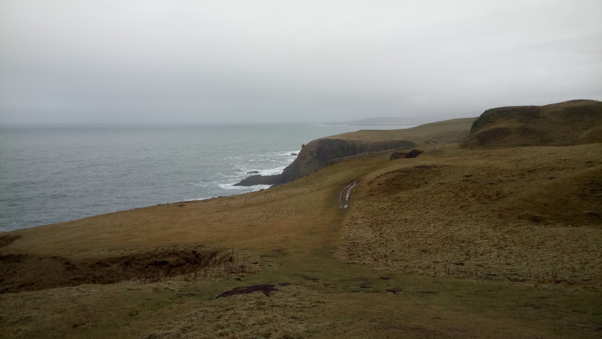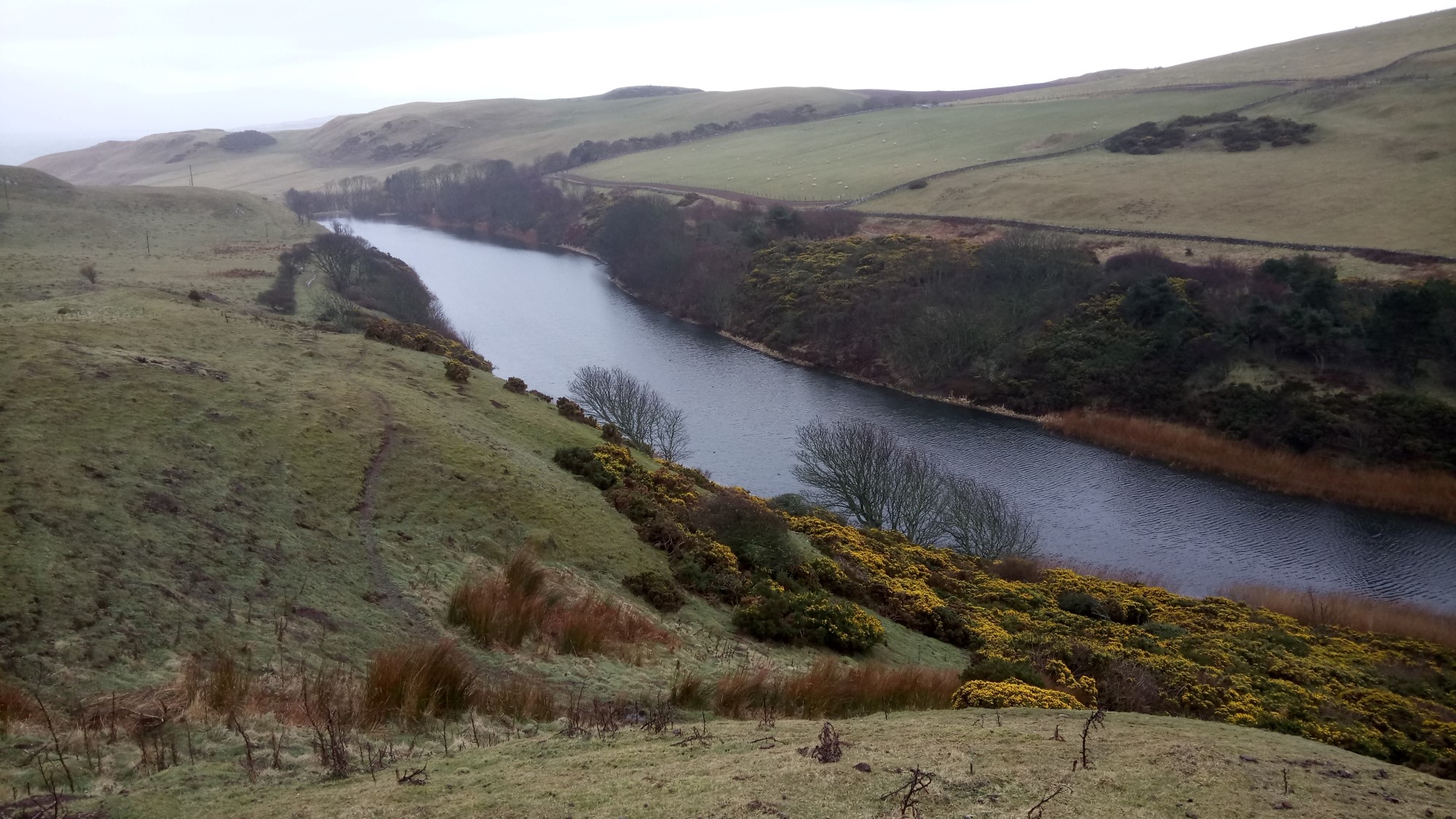 The road from the Nature reserve took us up to Mire Loch.  This is a very picturesque natural loch.  We walked alongside it up to the end, where we got the best view of the entire walk.  This was the incredible view of the bays North of St Abb’s Head.