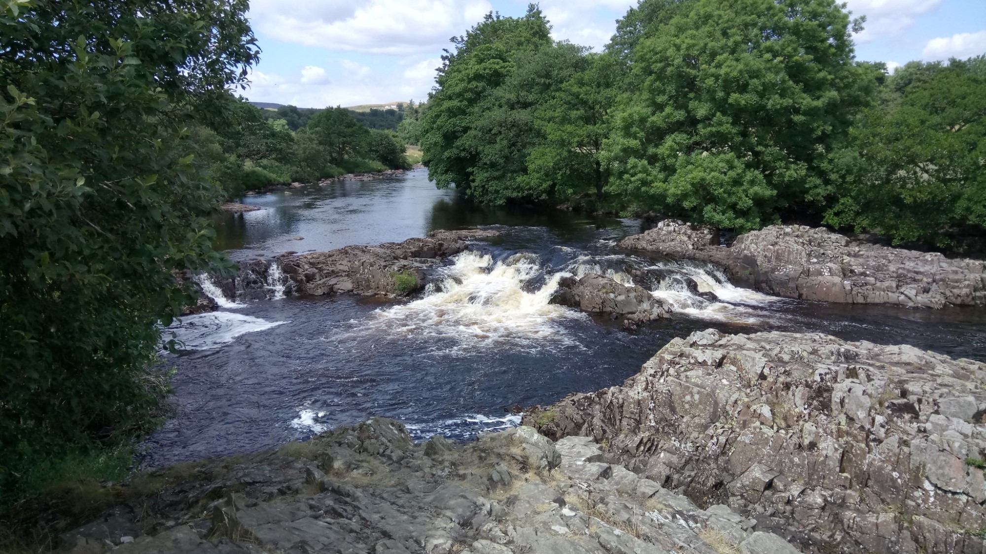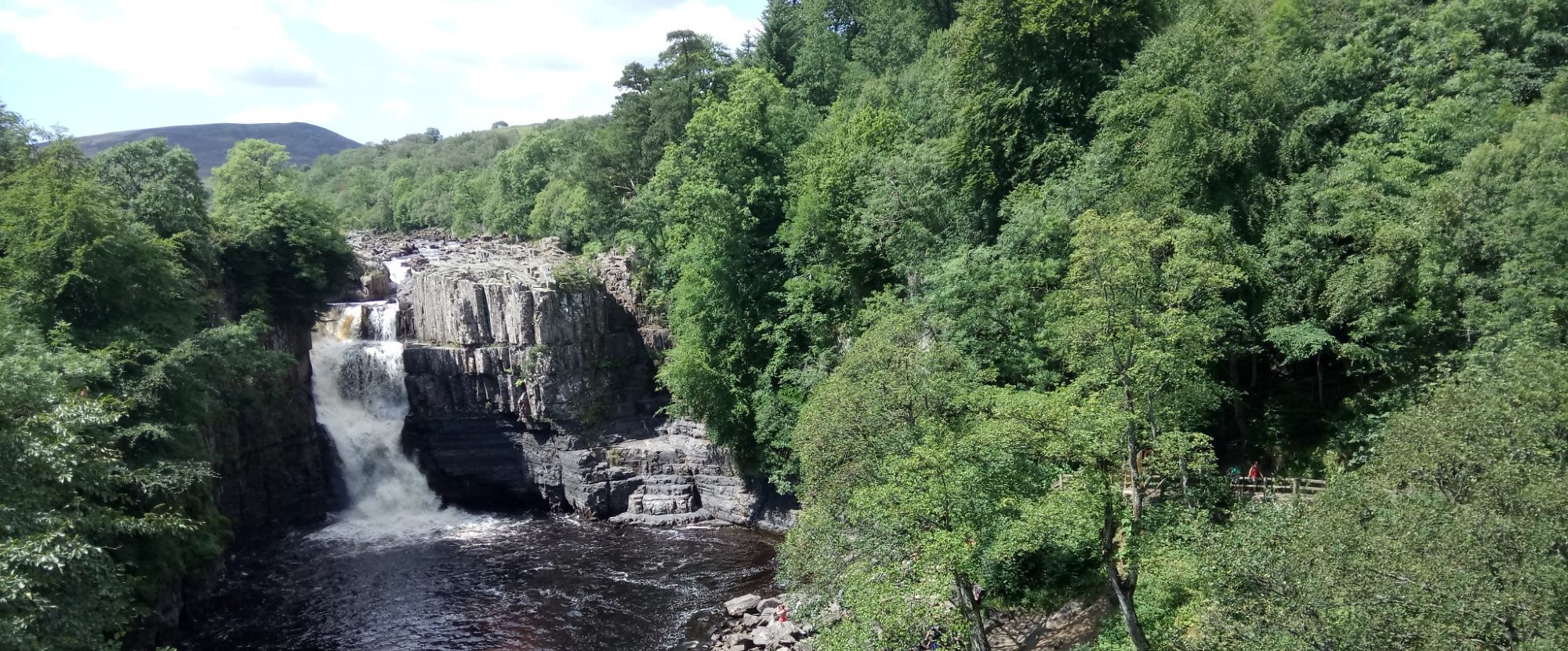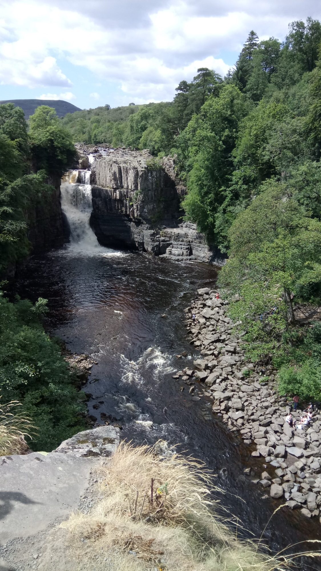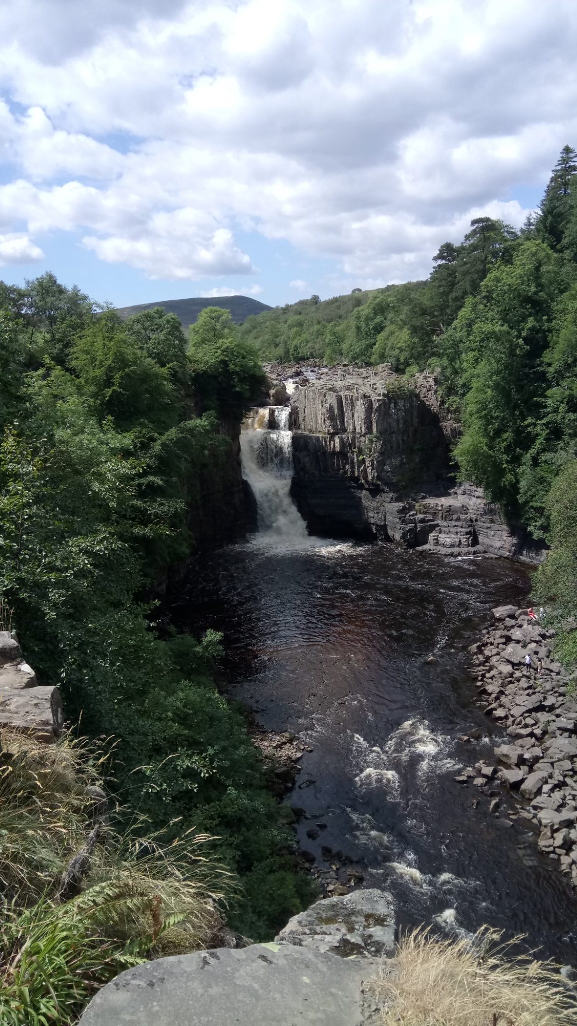 The unusual peacefulness allowed us to stop for lunch just above High Force. Even though the day had been hot, a cloud kindly came over for lunch and the cooling breeze by the water provided some welcome respite.