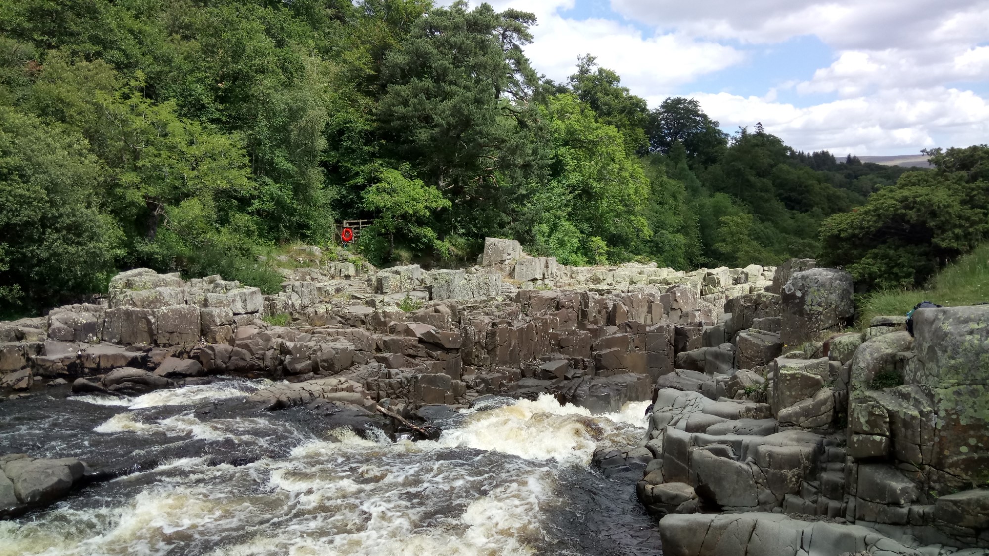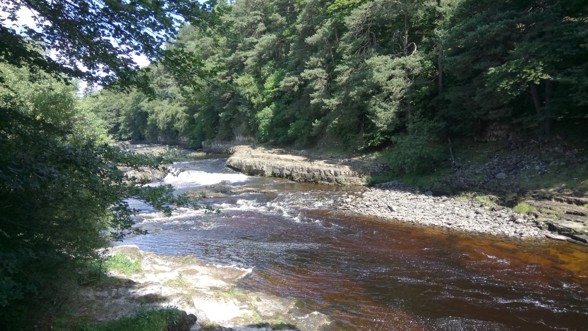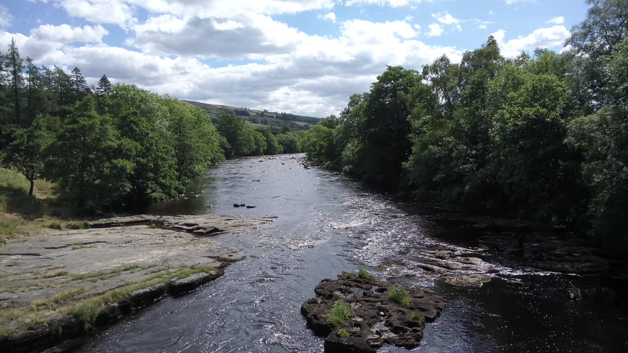 The unusual peacefulness allowed us to stop for lunch just above High Force. Even though the day had been hot, a cloud kindly came over for lunch and the cooling breeze by the water provided some welcome respite.