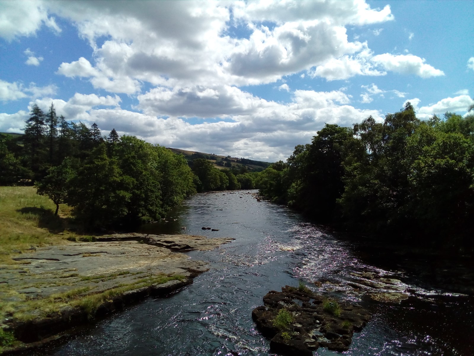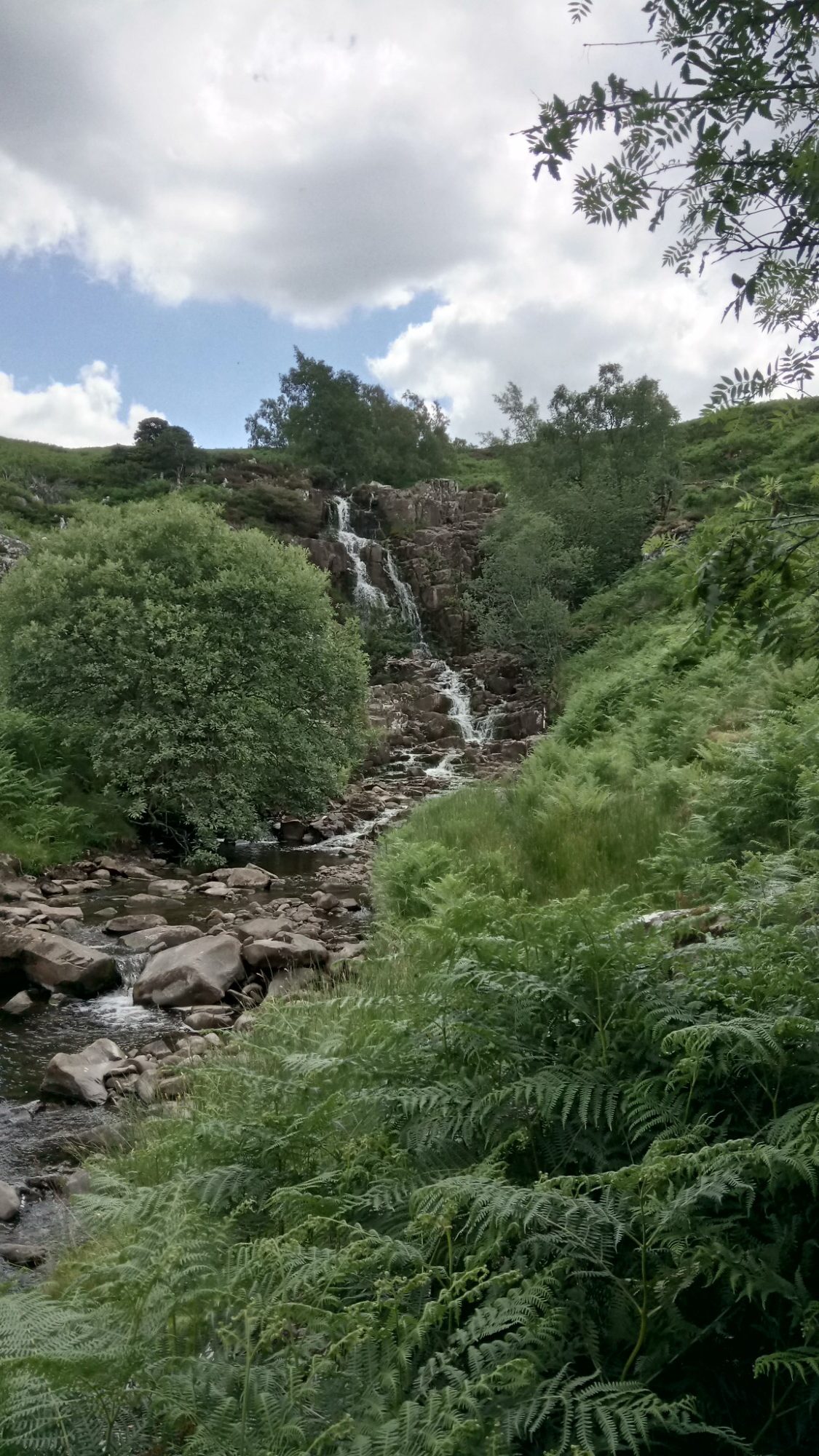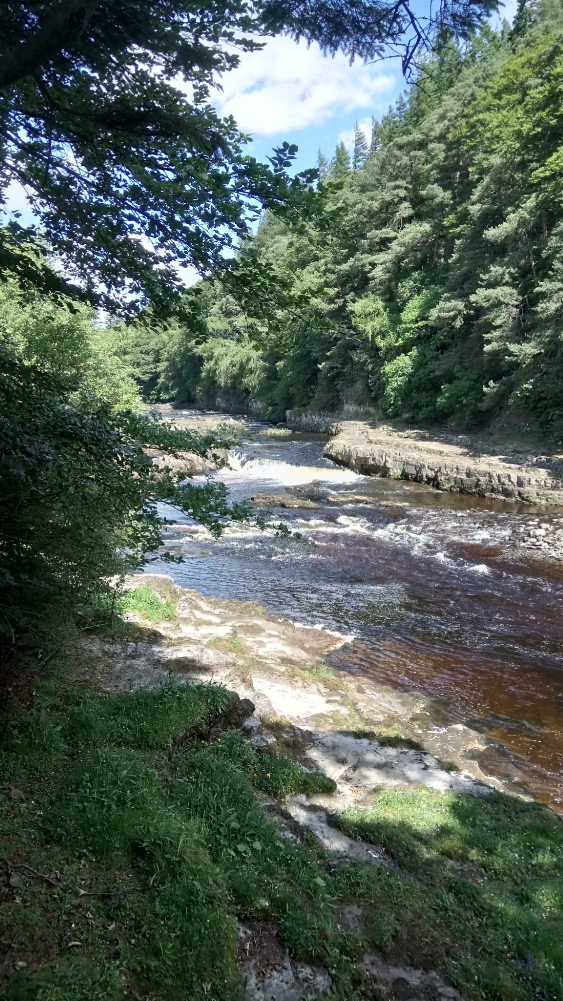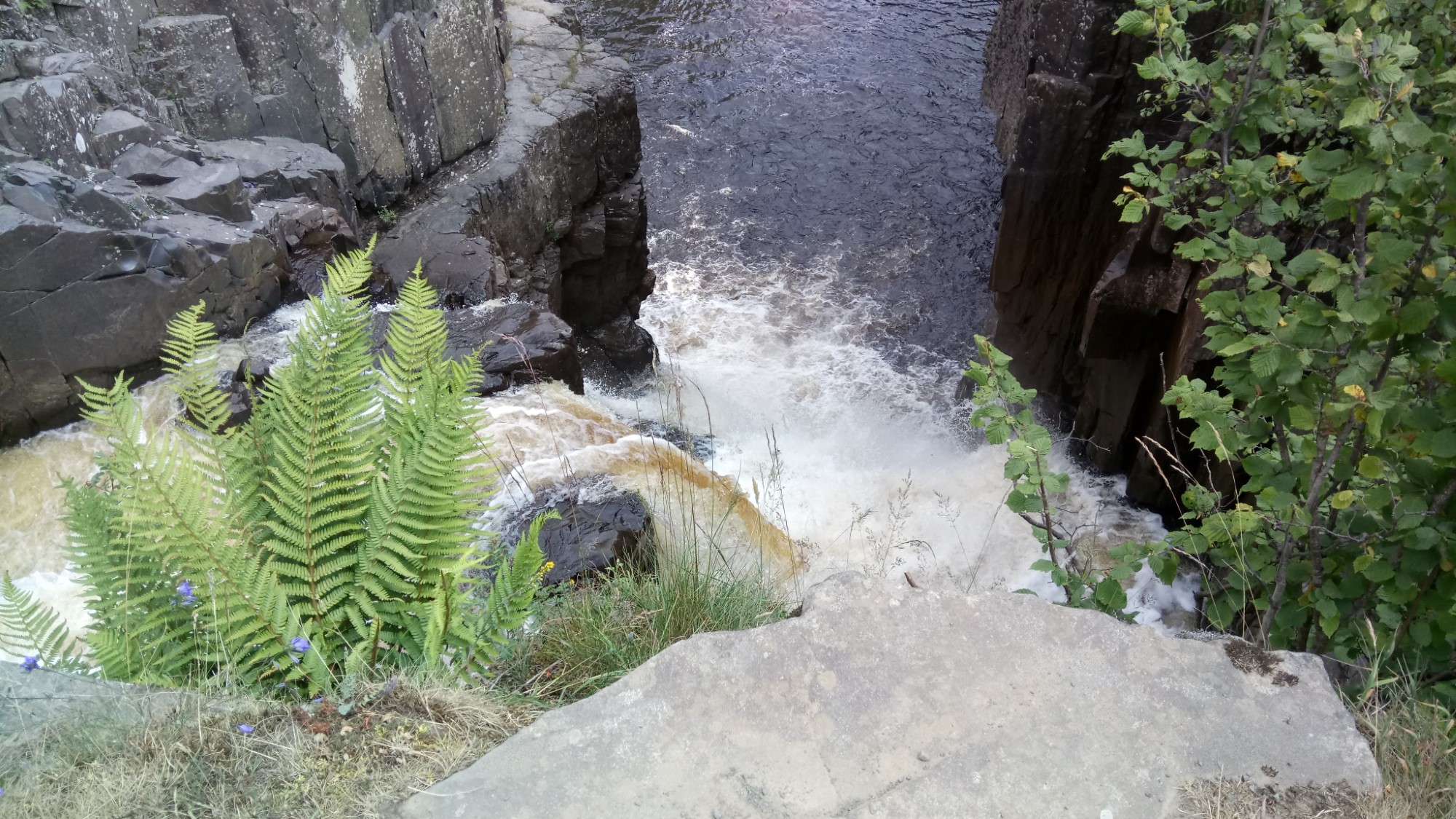 The unusual peacefulness allowed us to stop for lunch just above High Force. Even though the day had been hot, a cloud kindly came over for lunch and the cooling breeze by the water provided some welcome respite.