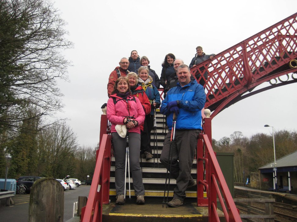 We crossed the Wylam Bridge and had a group shot on the bridge over the railway line.