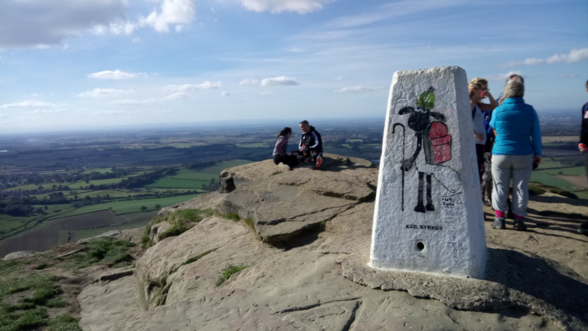 RoseberryTopping - RoseberryToppingRecce_29092018M-1.jpegOn the outskirts of Great Ayton, we turned a sharp right into Newton Wood and towards Roseberry Topping.  Reaching the bottom of Roseberry Topping, we went round to the North side and climbed up there.  We should have taken the tourist path, as this one was negotiable but steep.  Maybe next time.  At the top we found the normal crowded summit.  There were even several dogs up there.  The views all round from here are spectacular.  The North Sea at Redcar, Hartlepool, Middlesbrough, Stockton and Darlington are all visible on a good day.