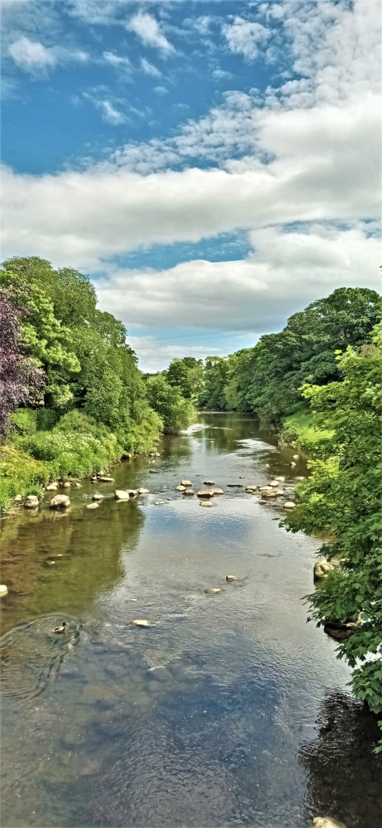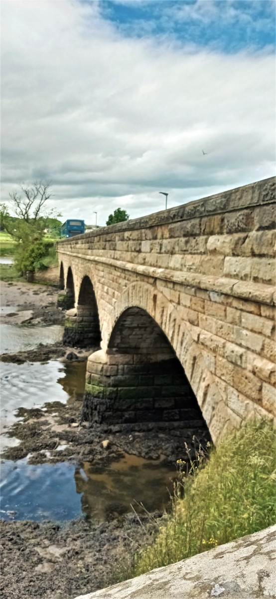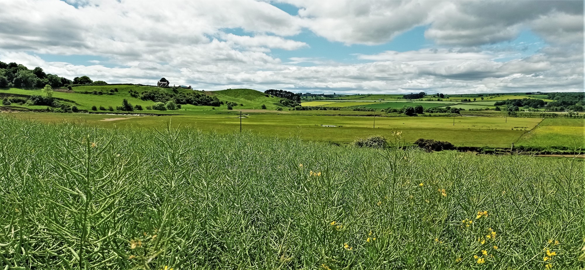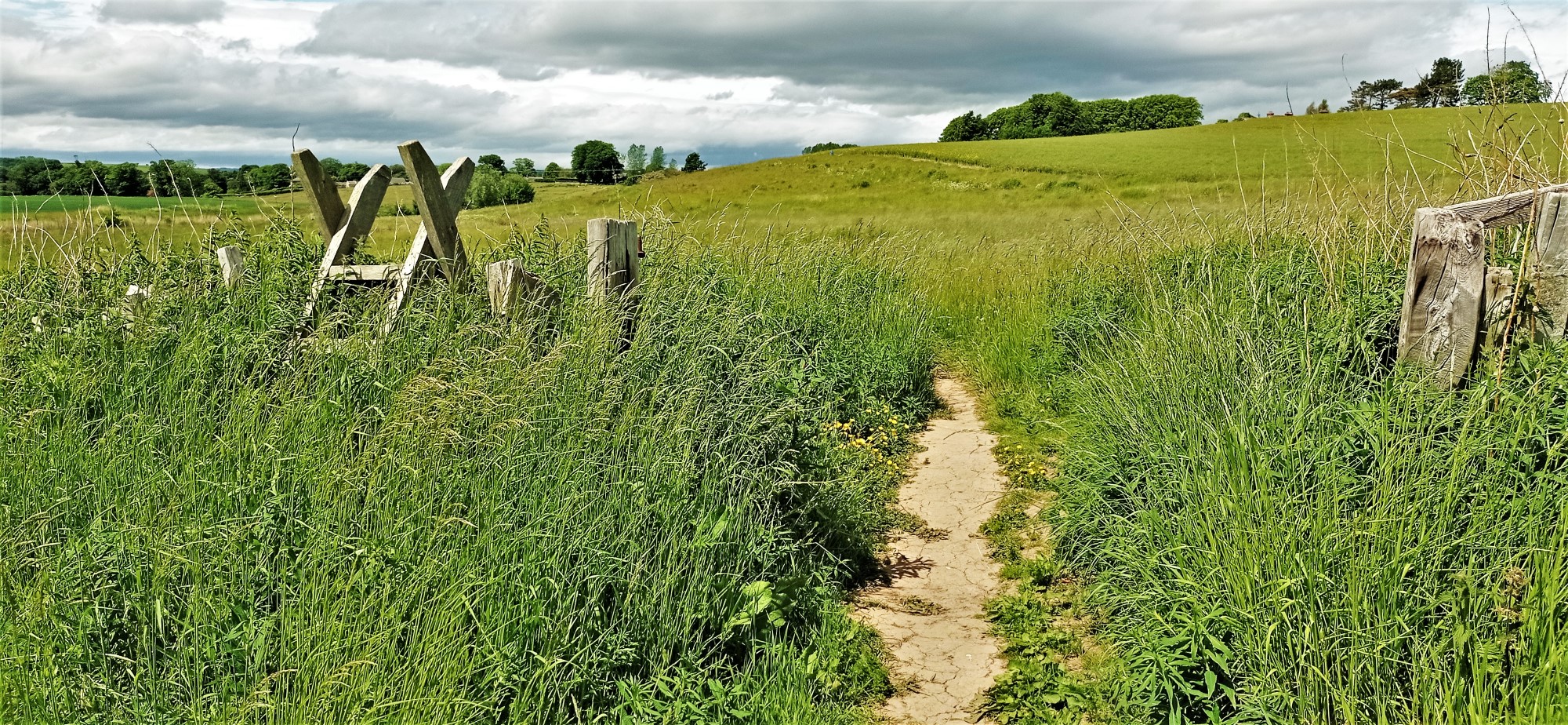 We cross the river Aln and make our way past the Cricket Club and towards Lesbury. However we don’t actually reach Lesbury. Instead, after crossing the river Aln again, we turn right along the river and through a few fields, some of which have crops in them.