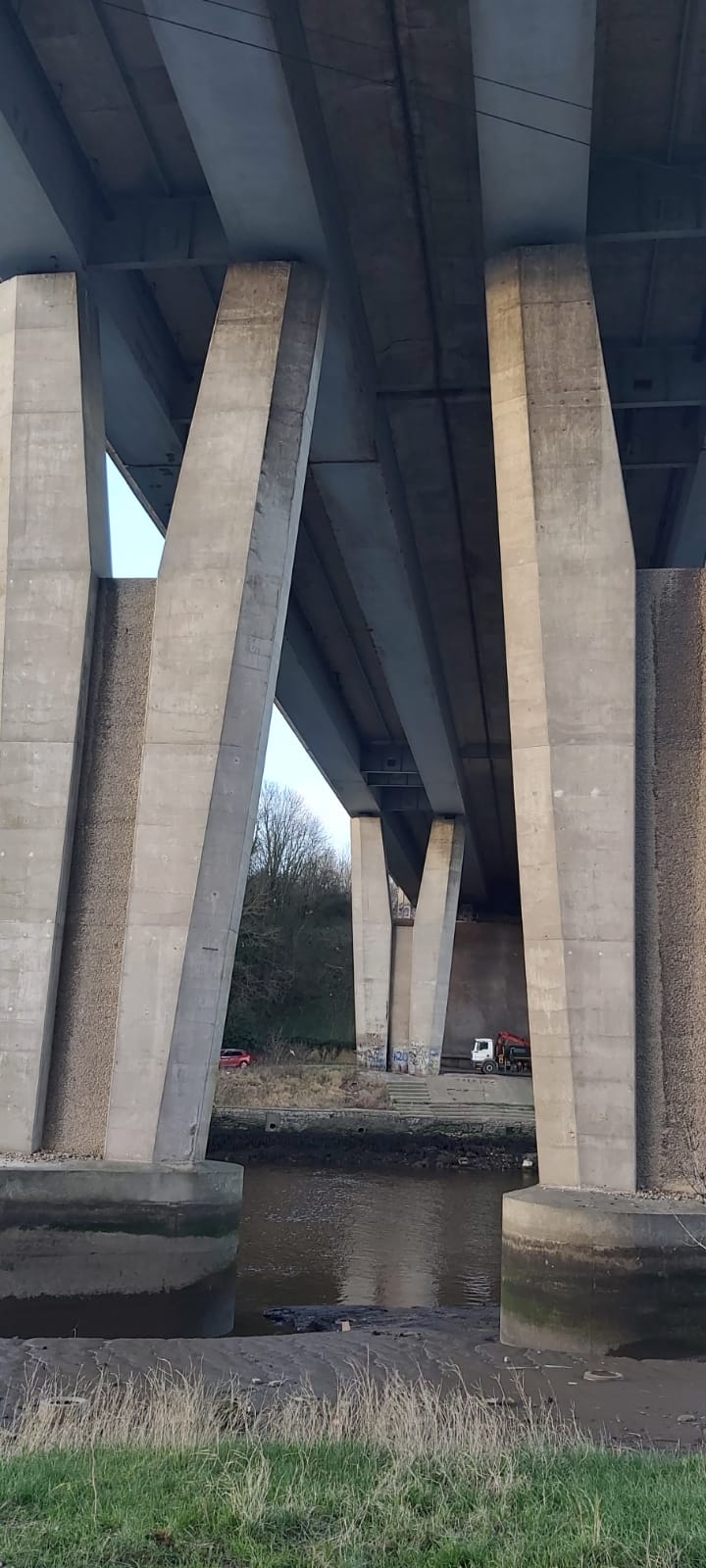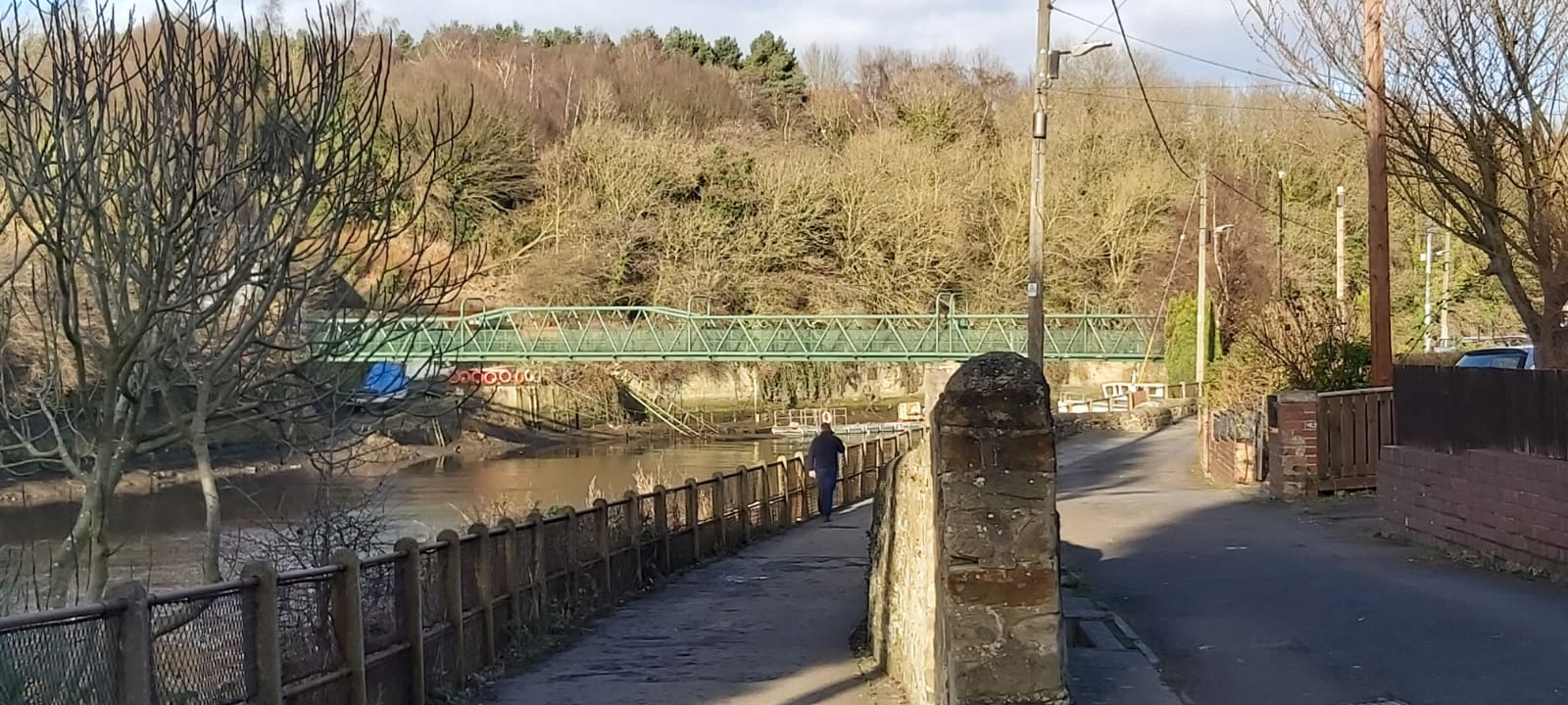 The last part of the first half takes us to North Hylton, where we cross over the A19 bridge to get to South Hylton. Here we make our way back down to the river, for our return journey. We head back to Cox Green, where we cross the river again.