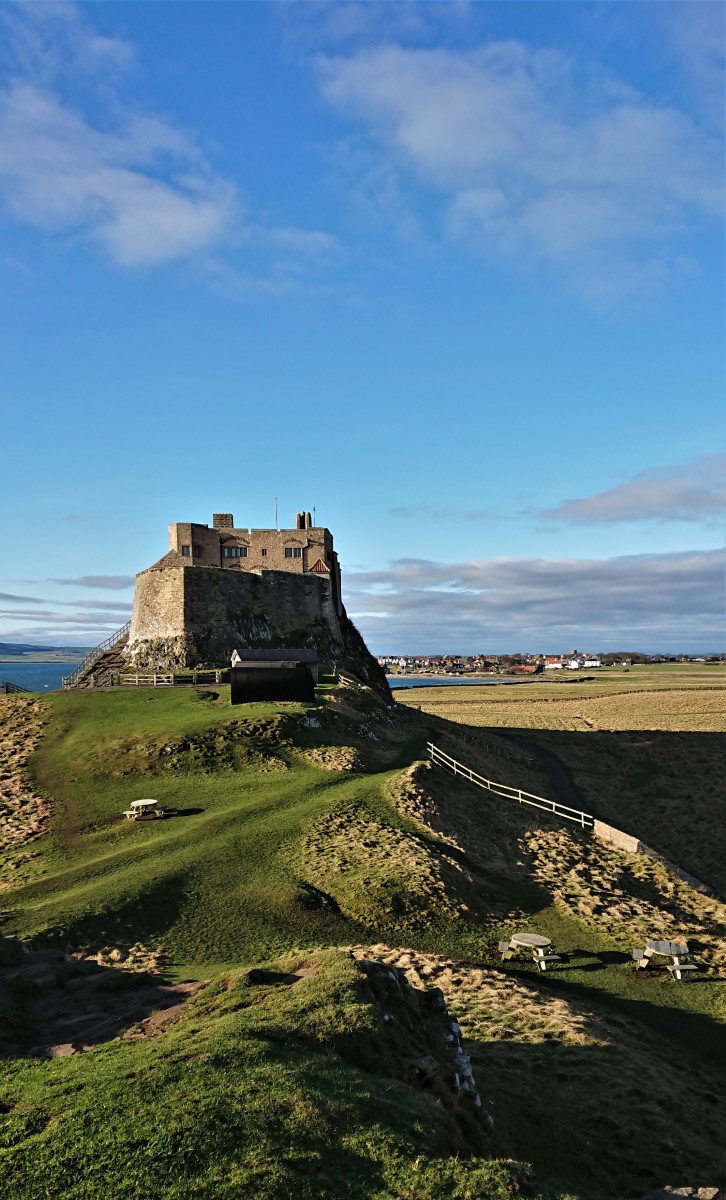We walk around the outskirts of Lindisfarne Castle.  The Castle recently underwent a £3 million restoration of Lindisfarne Castle  During the restoration they discovered beautiful, intricate wall paintings that they believe are likely to date back to the mid–late 17th Century.