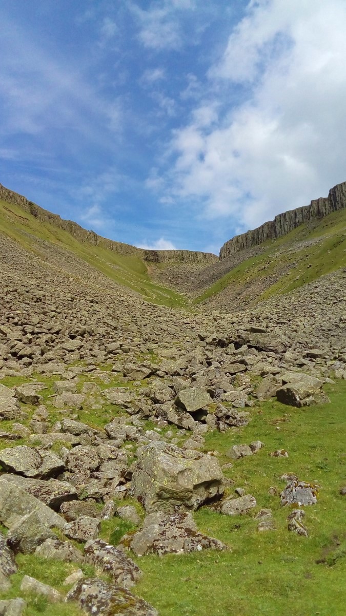As the jaw-dropping view appears you will stand and wonder how this could be created. It is the result of glaciation but the horizontal hard dolerite or Whin Sill intrusion has created the steep sides and the craggy rim, that makes it so distinctive.