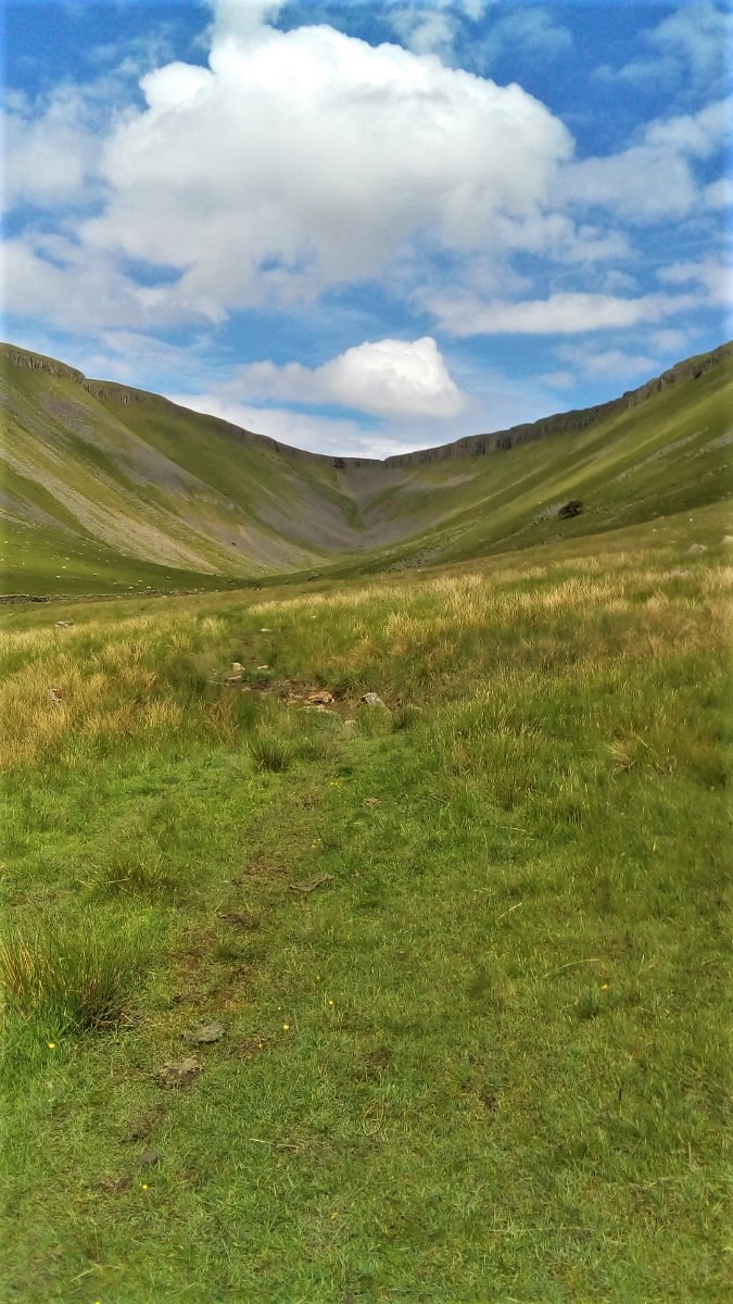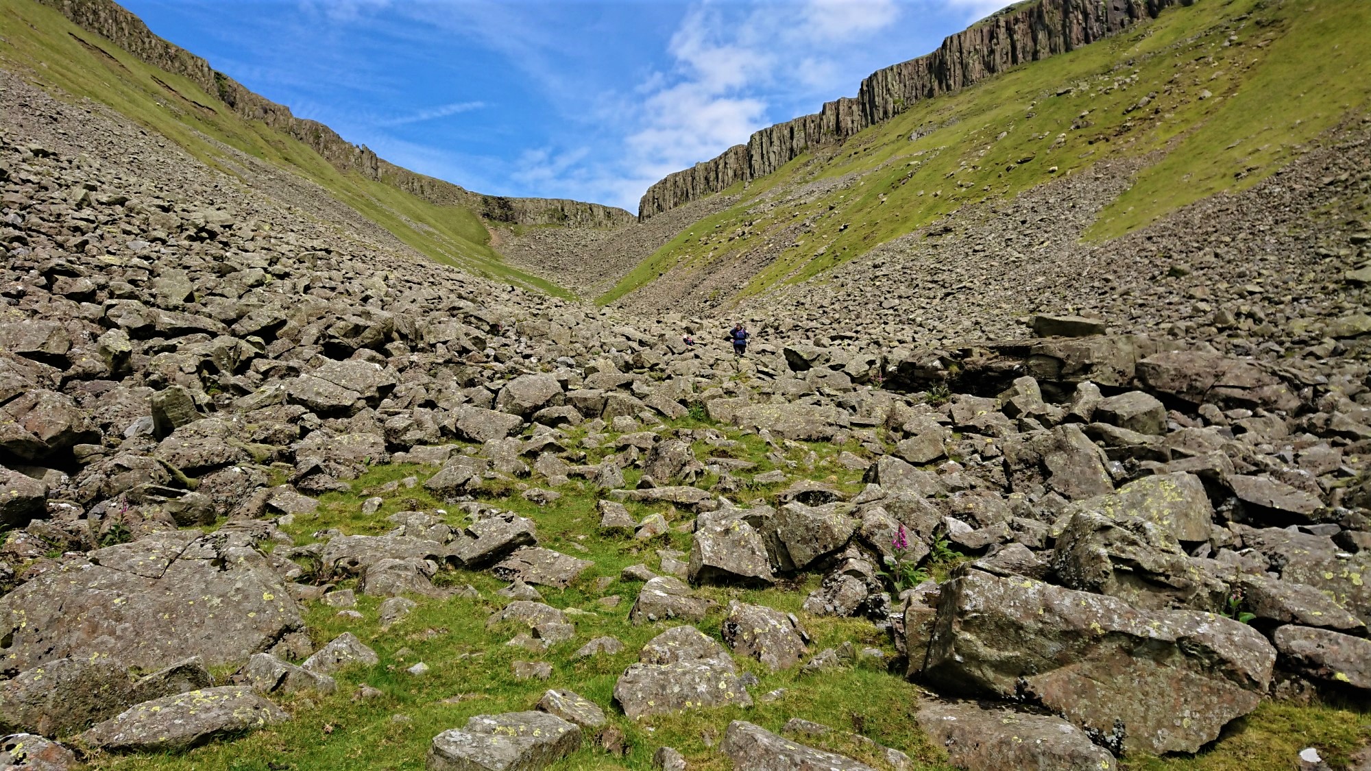 On the recce, we went down into the valley from here. This route is difficult and can be dangerous. So, instead we will follow a path along the South Eastern rim of the valley, back down to the valley bottom.