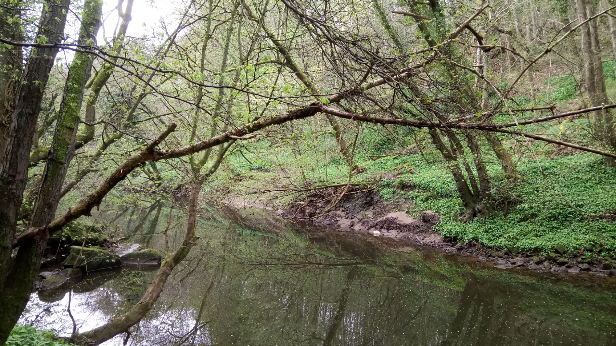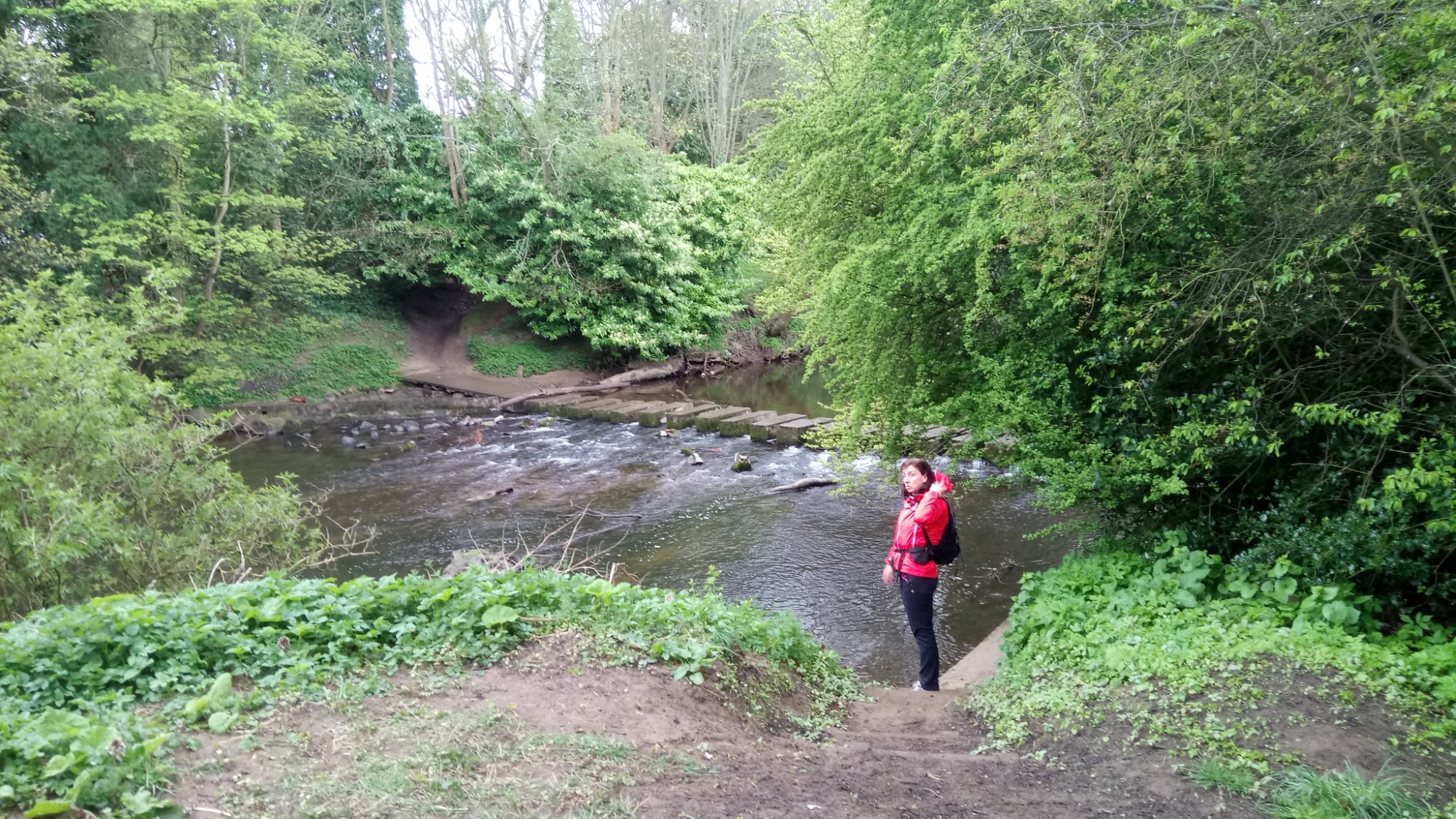 The river valley is wooded and peaceful. Even the busy road doesn’t disturb the peace down here. All you hear is the birds, the river and wind in the trees.