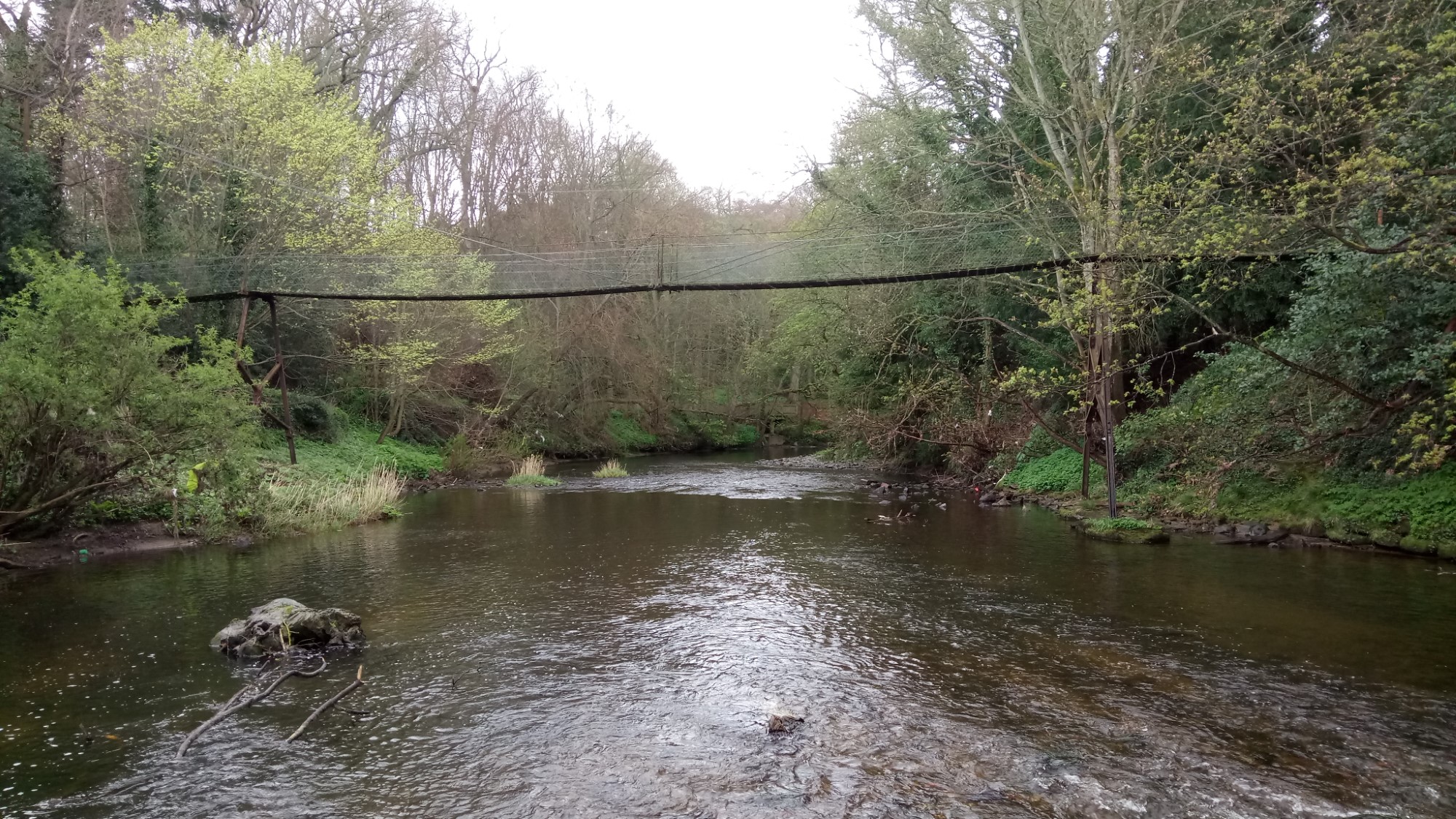The walk between Morpeth and Bothal is along the River Wansbeck. To get there we initially wander through the pretty woodland North of the road before crossing it and heading into the river valley.