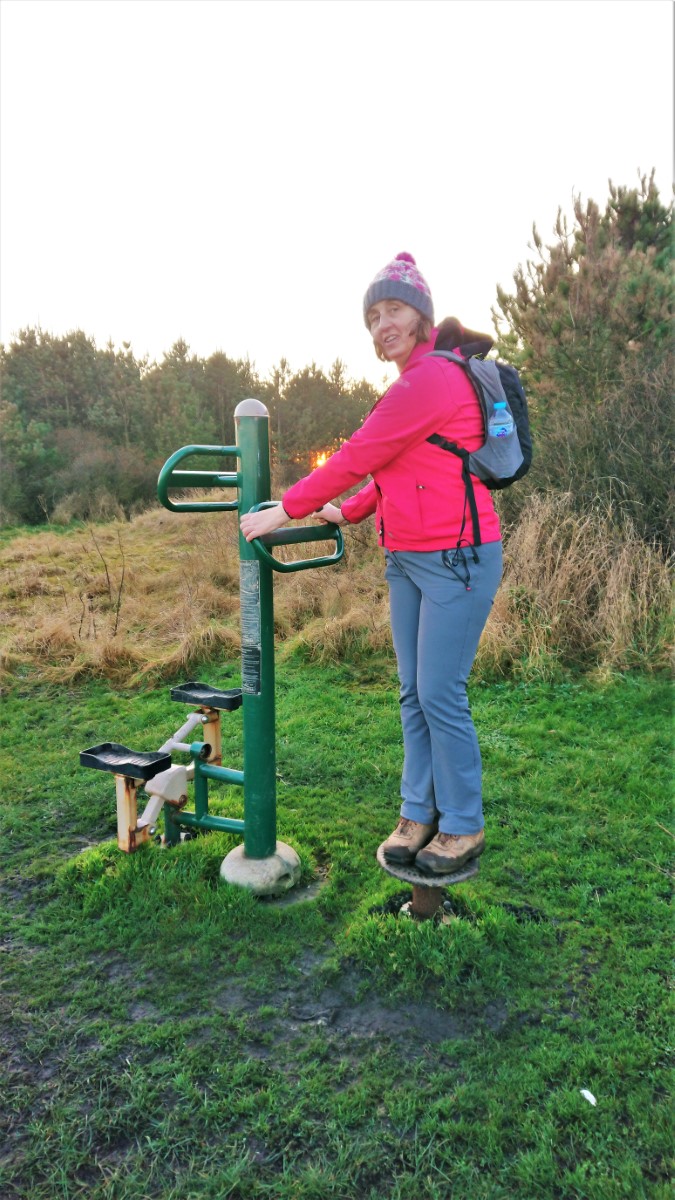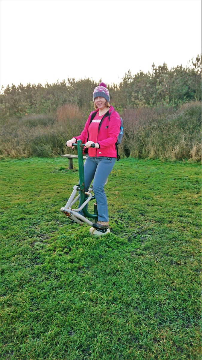 The way back to the start is to retrace our steps, but at Cambois we will use the path over the dunes. If you like, you could take advantage of the gym equipment up here and feel the burn. Julie tried out some of the machines.