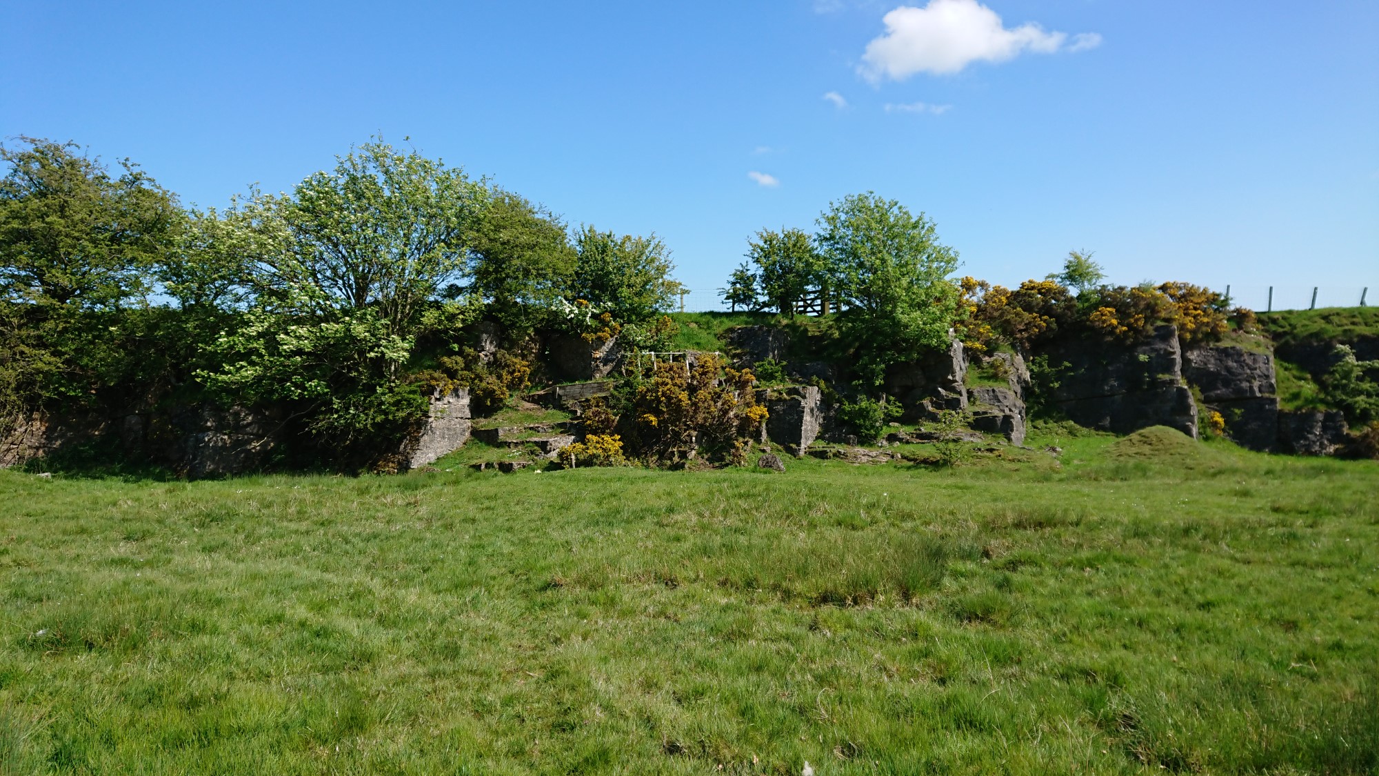 The path emerges onto farm land and a quarry where limestone must have been mined, to go directly into the adjacent lime kilns. Continuing along an old lane near Gallows Hill farm, we cross a road and then take a path though more fields before rejoining the railway.