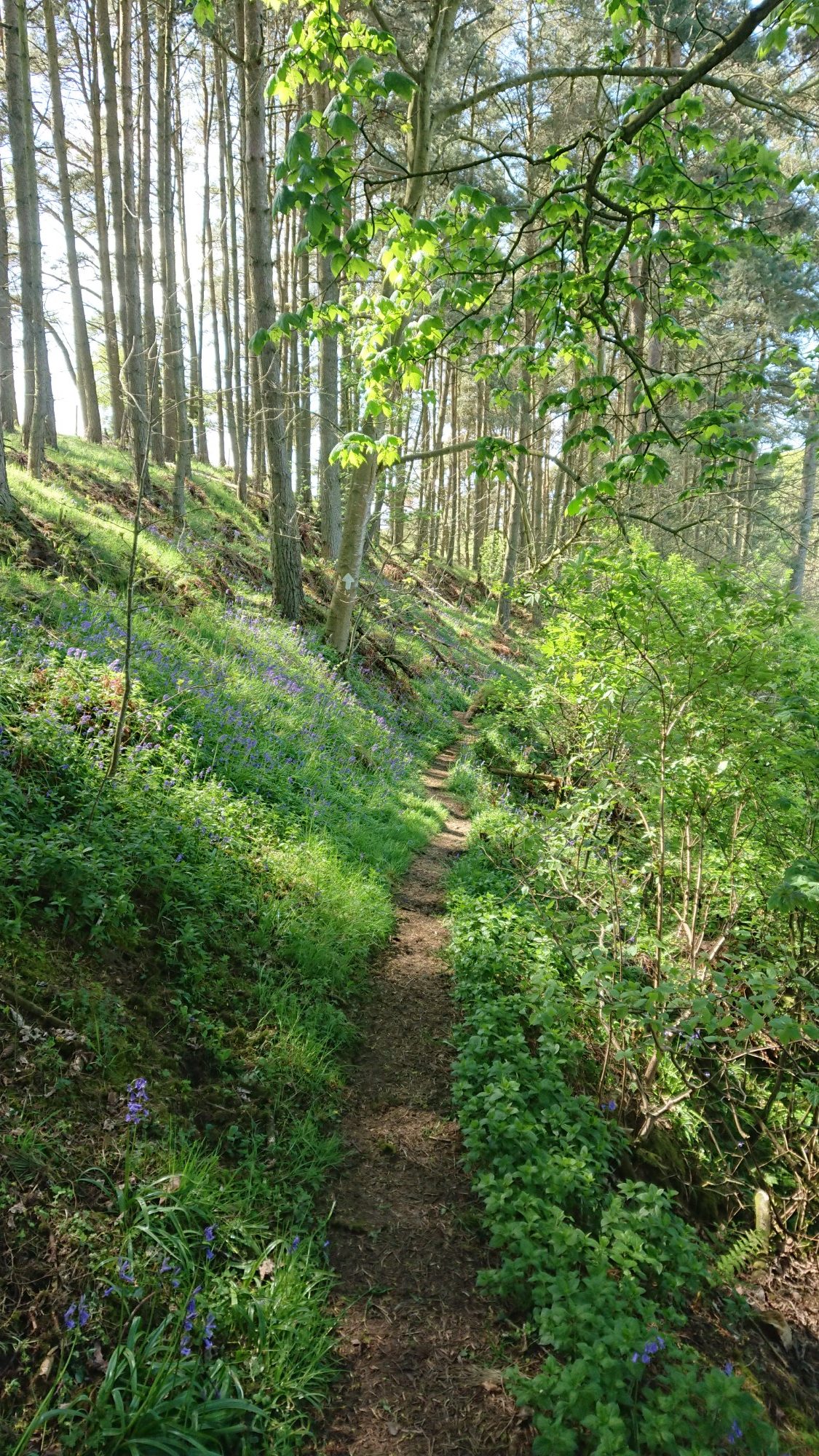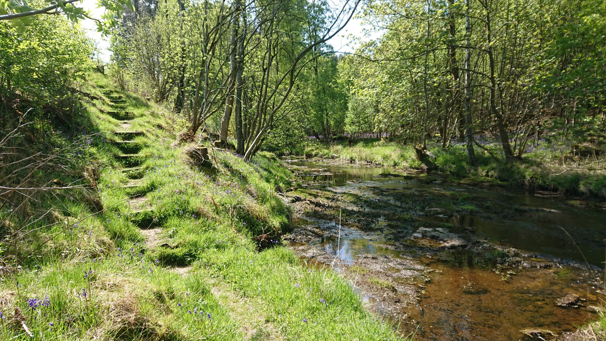 About 1.5 miles up the track, we leave the Rothbury Branch to take a path over to the Wannie Line. This path starts by following the Delf Burn into Delf Plantation, which is a lovely path along a wooded valley.