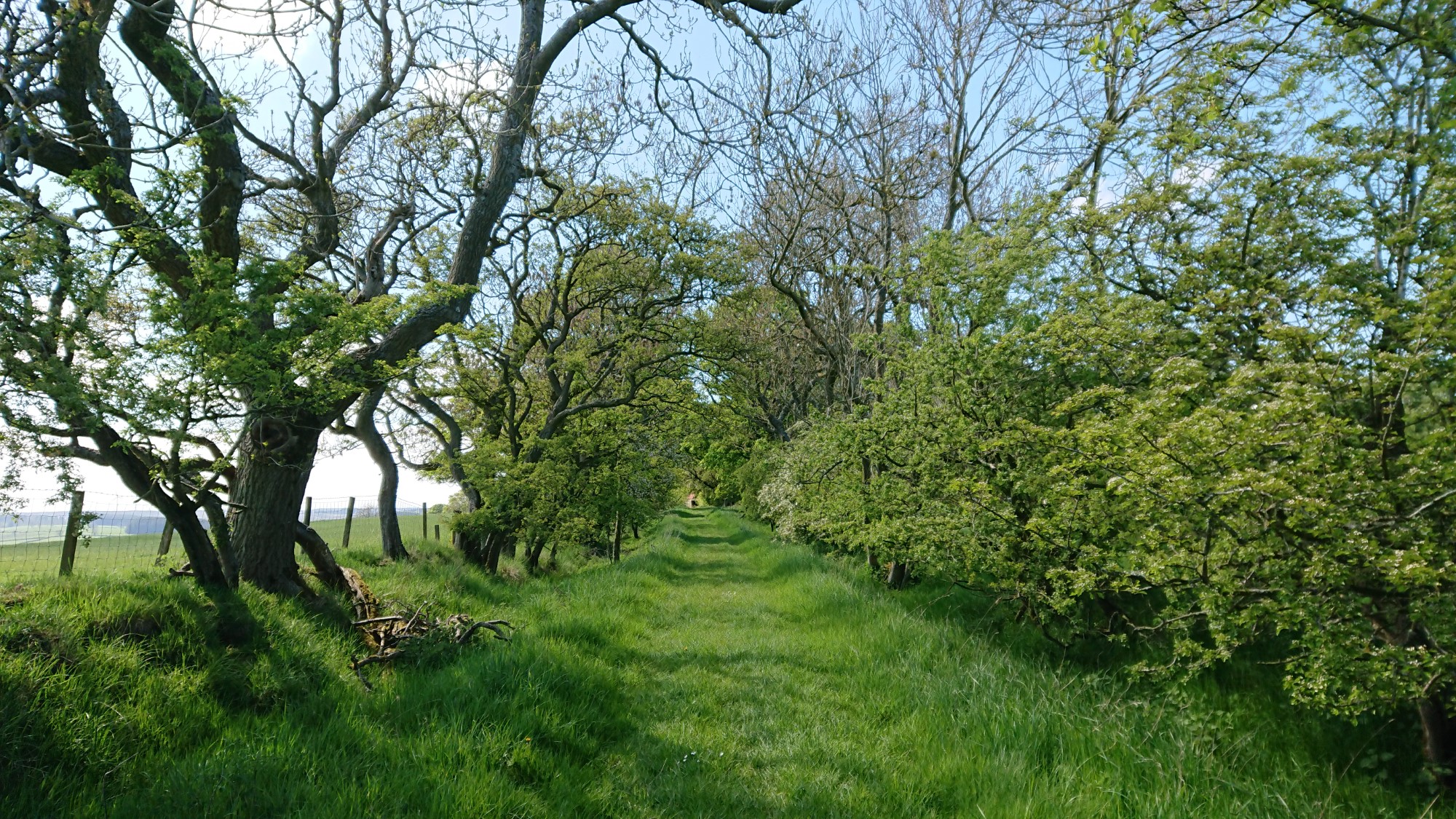 The first part of this leg is through a cutting, which has been taken over by trees. Along the rest of the line the farm animals have no regard for history and the line is just another food source. There is about 2 miles of this railway before we arrive back where we started.