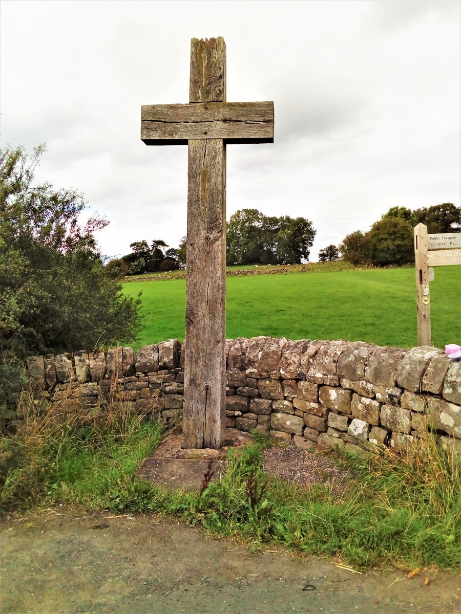 Turning left at Fallowfield, we pass the Fallowfield Alpacas. The route then takes us across fields to reach St Oswald’s Church and Heavenfield, the end of St Oswald’s Way. From here we get some amazing views.