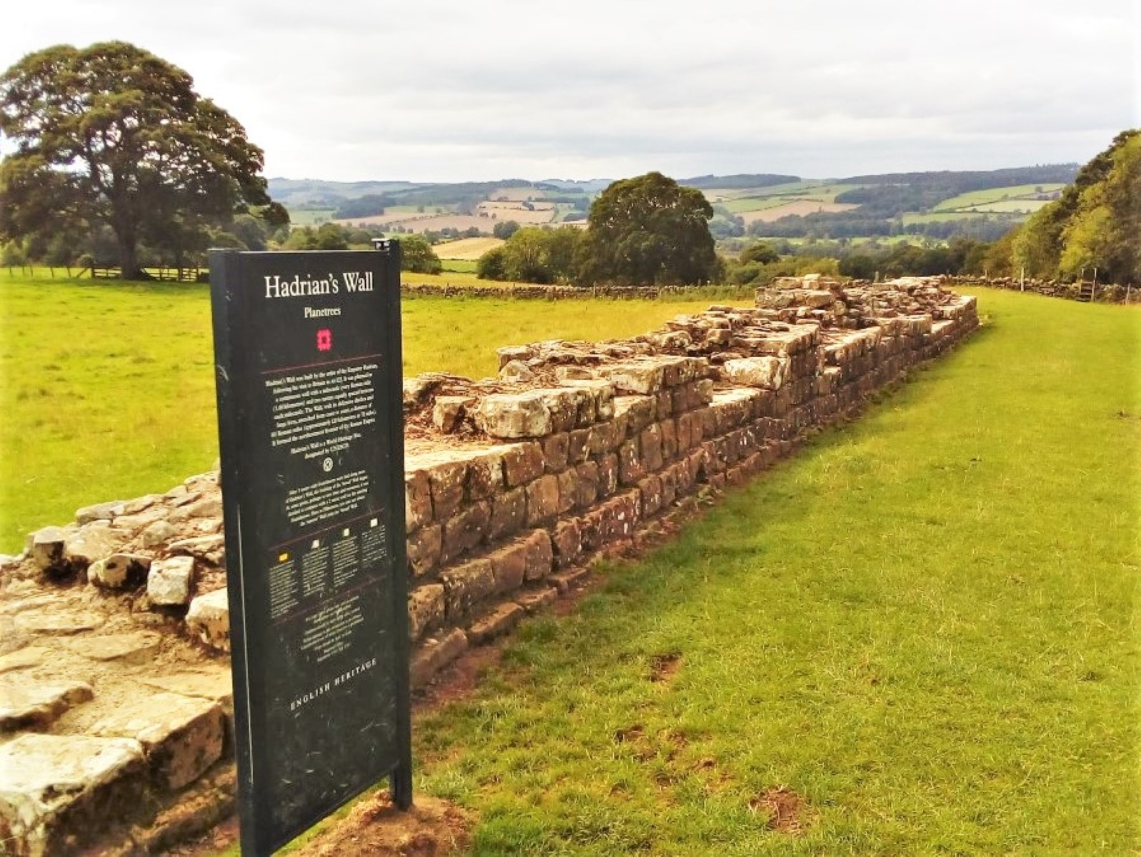 On the way back, we pass a small piece of Hadrian’s Wall at Planetrees.  This piece of wall is significant in that it shows where the width of the wall was reduced from 10 feet to 8 feet, probably to speed up building.