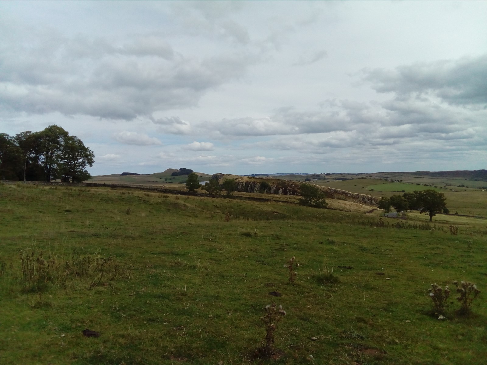 This is a longer stretch of walking along the top of the Great Whin Sill. The Whin Sill is a hard rock that has resisted erosion. It can be seen across much of the far North of England. Sites such as Lindisfarne Castle, Dunstanburgh Castle are built on Whin Sill and High Force flows over it.
