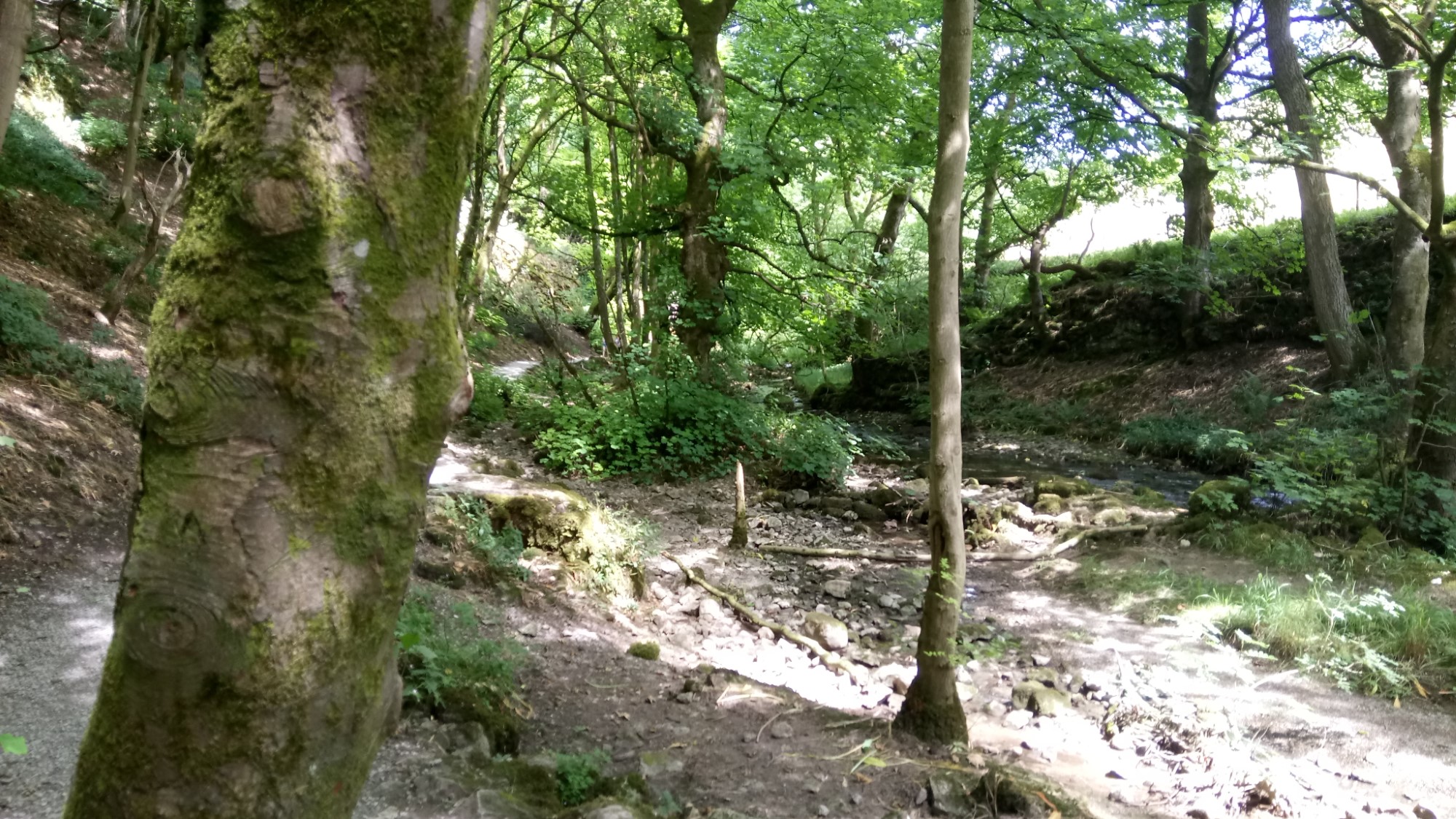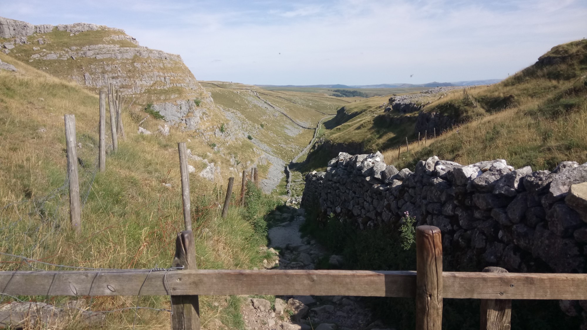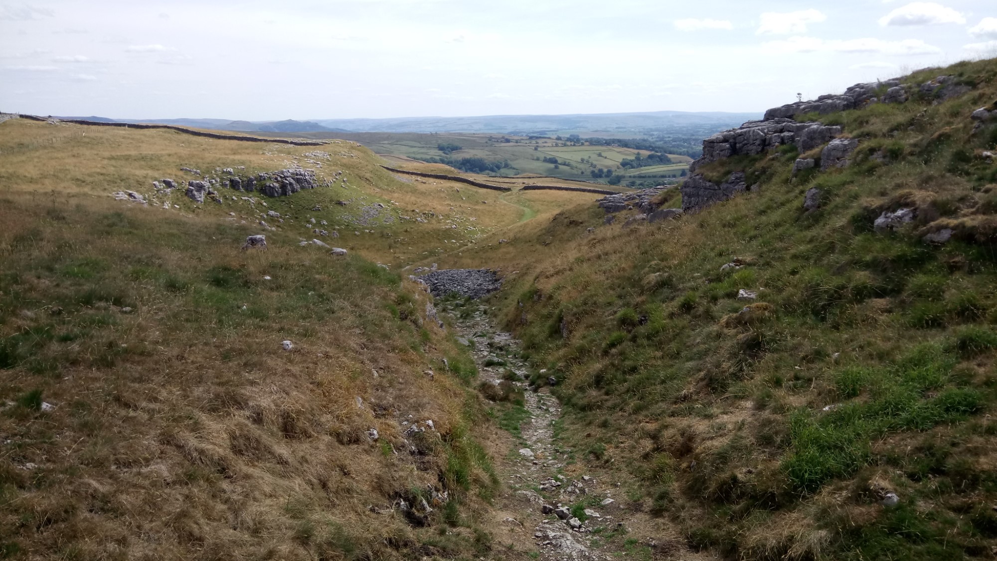 The waterfall at the end, rarely has any water in it but today, like Janet’s Foss, it was bone dry. There is a route up the waterfall, to the area above the Scar. However, we retreated back down the valley, to take a different route.