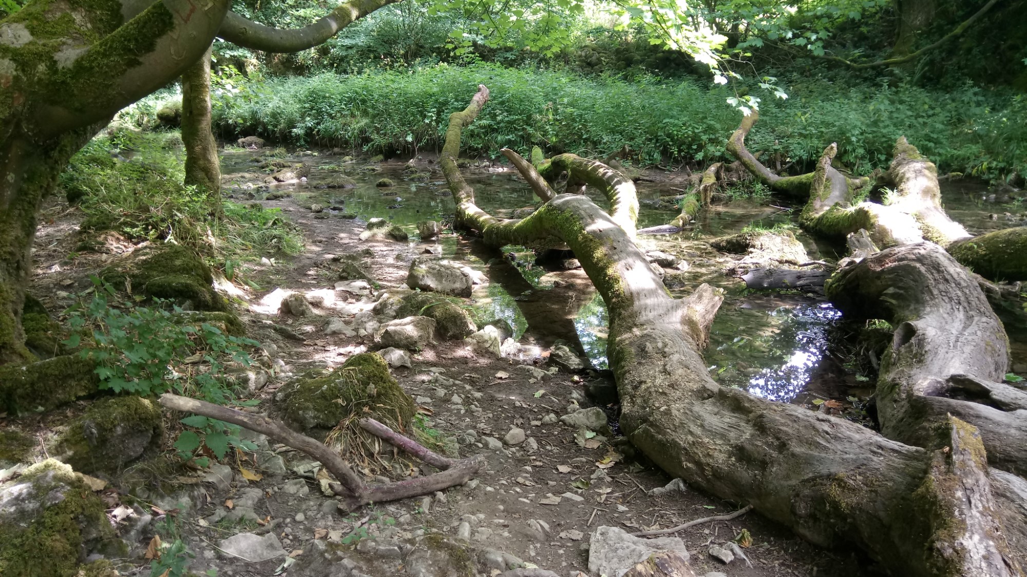 We started off from the village and went along the Pennine Way, before joining the river path towards Janet’s Foss. This is a lovely start to the walk, flat and varied. The path enters a woodland area, close to the Foss. On reaching Janet’s Foss, our expectations were borne out. The very dry summer had resulted in the usual delicate curtain of water to a trickle. Hopefully, there’s a bit of rain before we return.