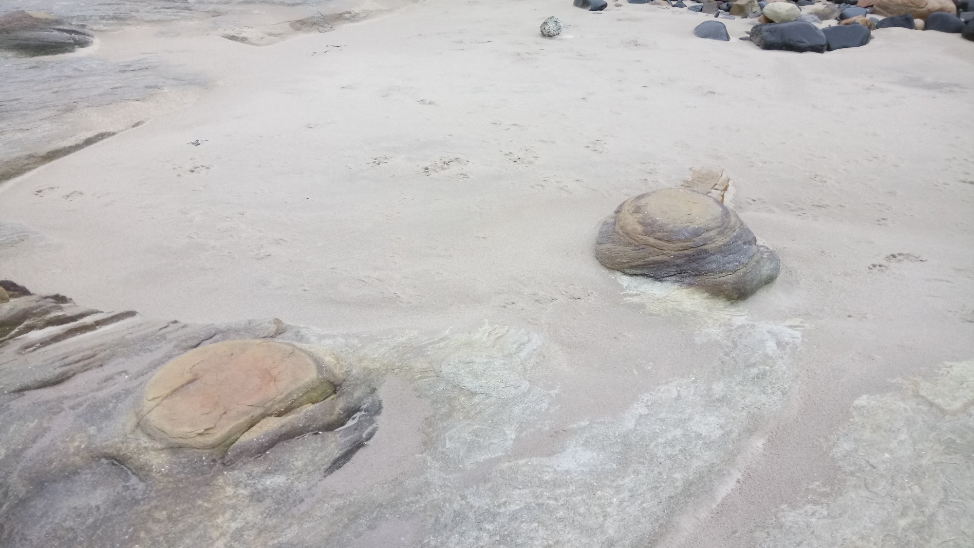 We came across some rocks which, because the tide was high, were negotiated by going up onto the cliff top. This path took us alongside an old WW2 pillbox hidden in the cliff side.